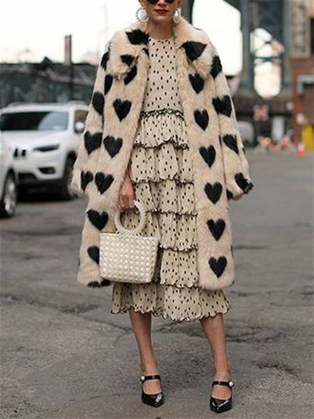 2022 Winter-Frauen-warmer Kunstpelz-Mantel-Liebes-Muster-Frauen-langer Mantel-Umlegekragen-Frauen-warmer Plüsch-Mantel-klassischer Mantel lose