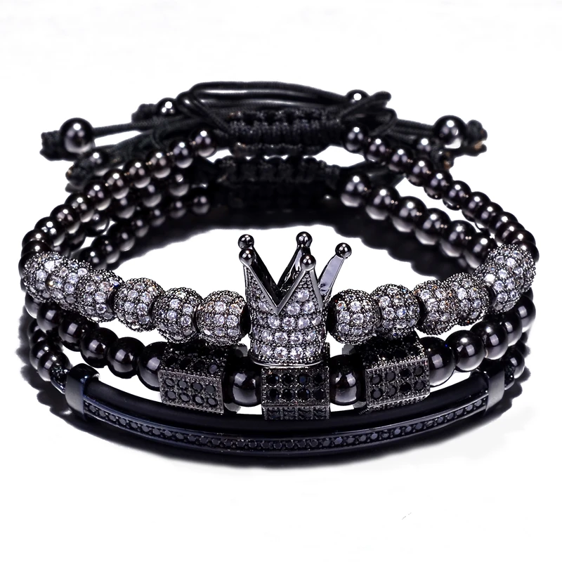 3 teile/satz Luxus Schmuck Neue Zirkon Hip Hop Gold Farbe Armbänder Männer Kubische Micro Pave CZ Charme Geflochtene Flechten Pulseira