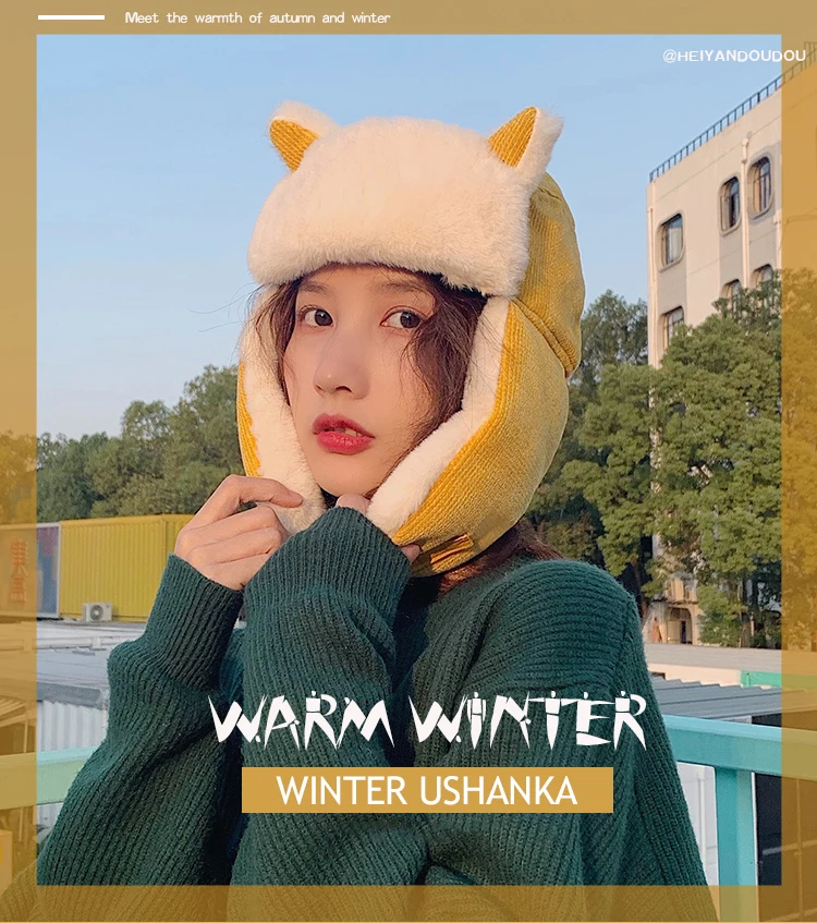 Herbst-Winter-Uschanka für Frauen : Warmer Hut für Mädchen, niedlicher Reit-Windschutz-Hut