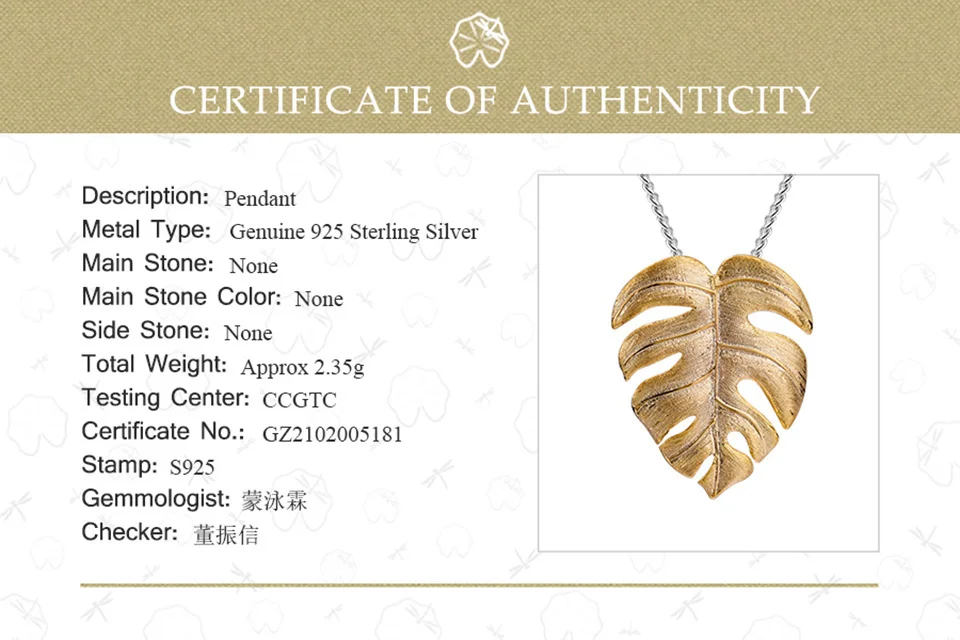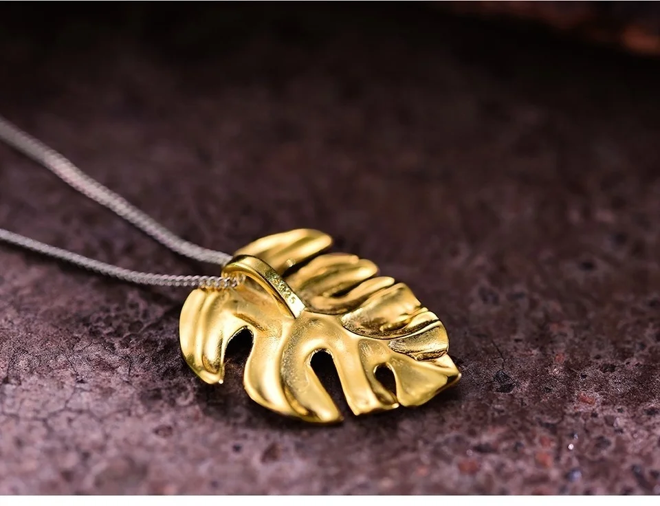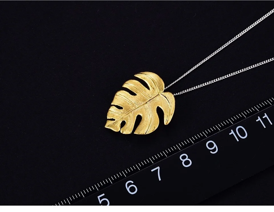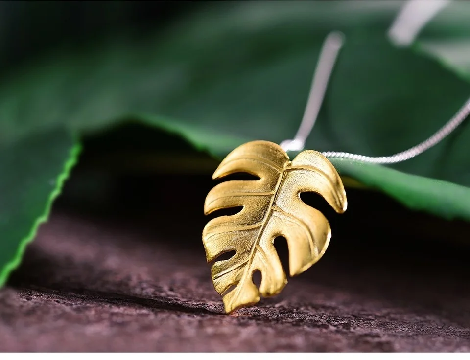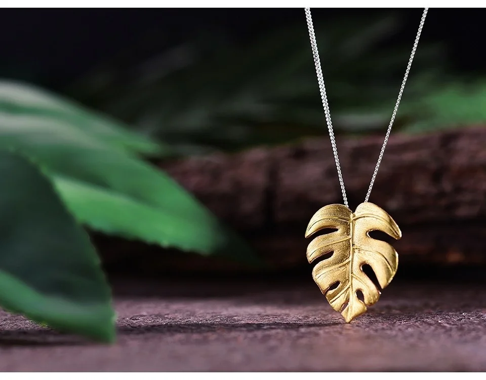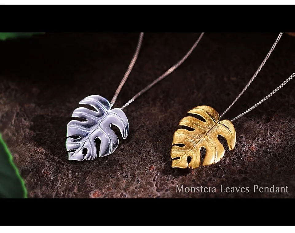 Lotus Fun Real 925 Sterling Silber Handmade Fine Jewelry 18K Gold Monstera Leaves Design Anhänger ohne Halskette für Frauen Geschenk