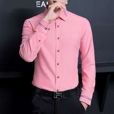 MIACAWOR Frühlings-Langarmhemden Herrenmode Oxford Camisa Masculina Slim Fit Freizeithemd Weiß C274