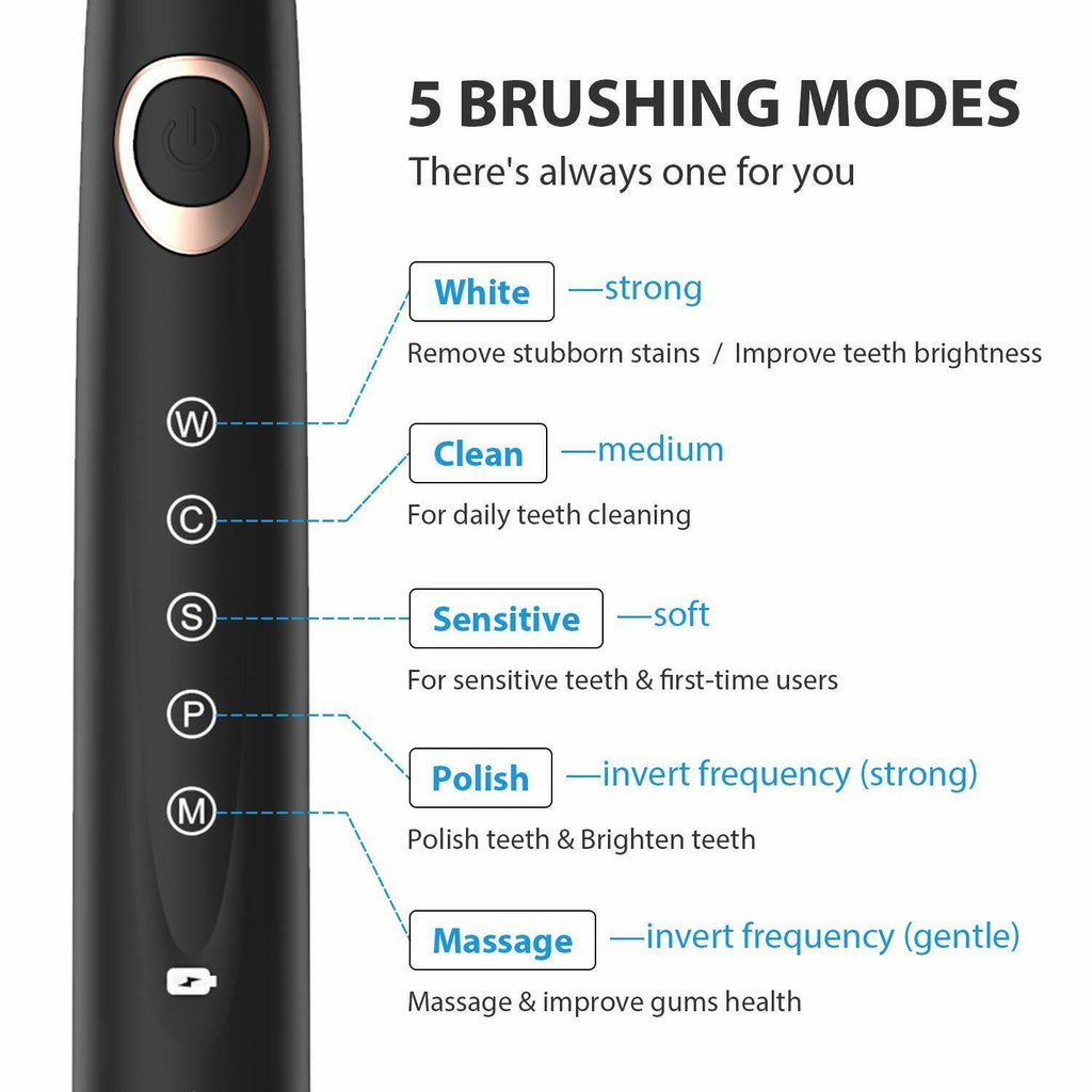 Sonic electronic toothbrush is safe, fully washable and convenient to use while taking a bath or shower.