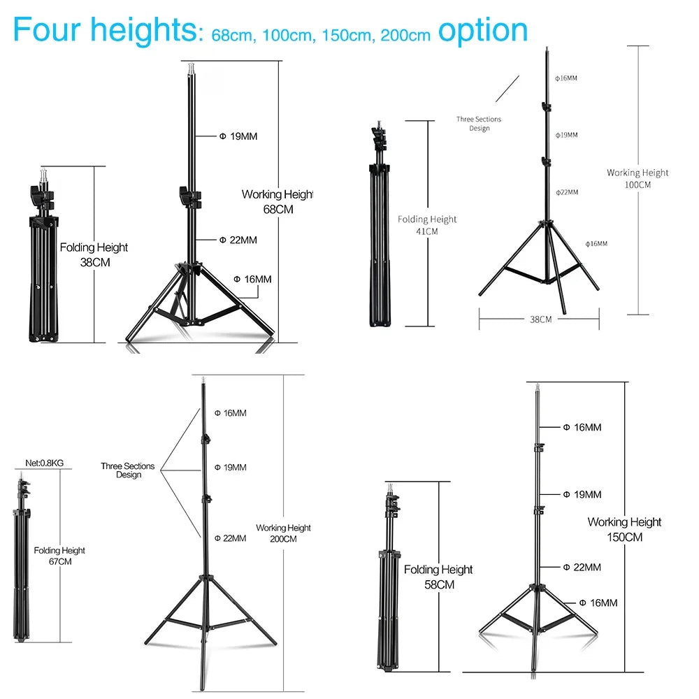 1/4 Screw Head Light Stand Tripod 2m 1.5m 68cm For Phone Selfie Stick Adjustable For Photo Studio Flashes Photographic Softbox