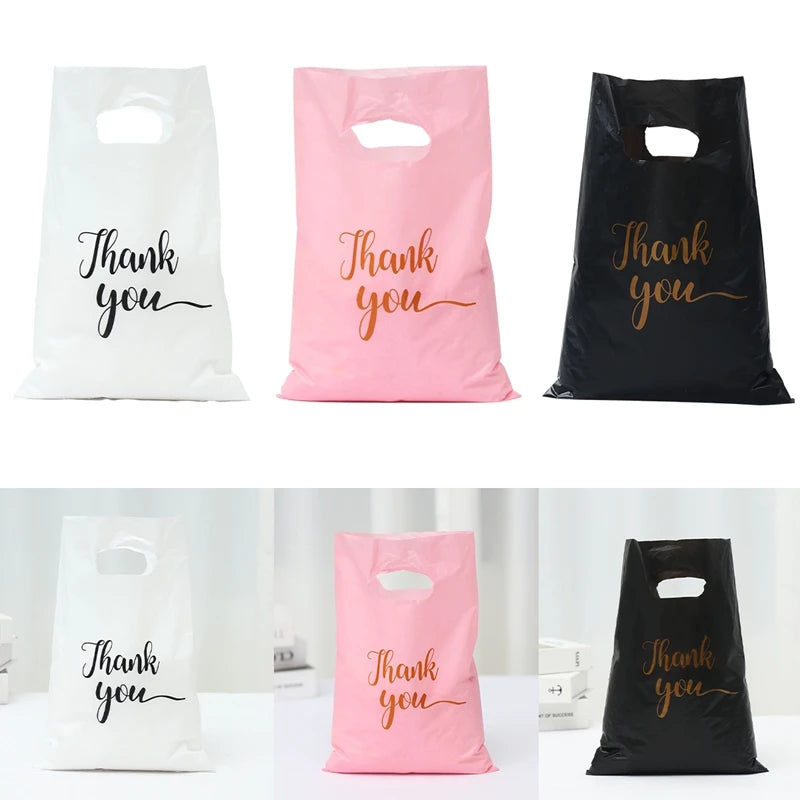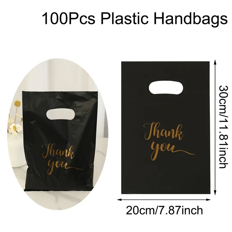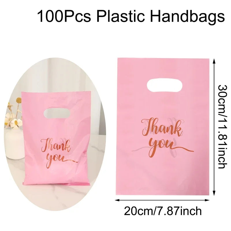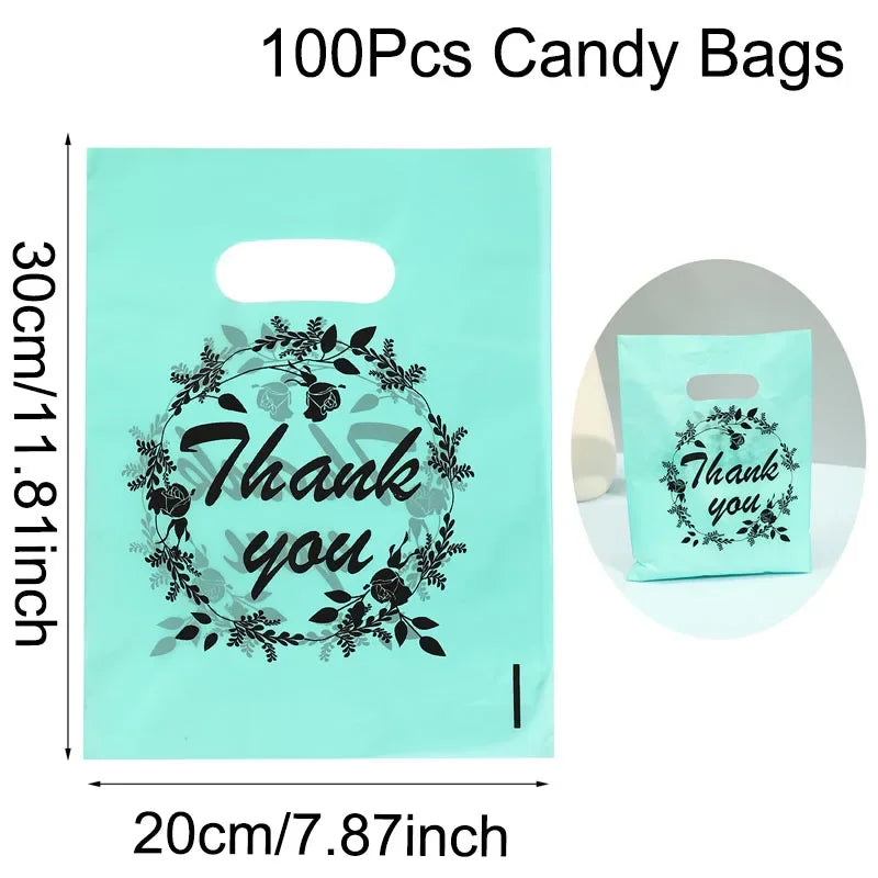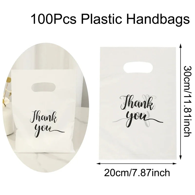 100pcs Thank You Gift Bag Plastic Shopping Bag Tote Bag 20*30cm Gift Bags Birthday Wedding Party Favors Candy Cookie Wrapping