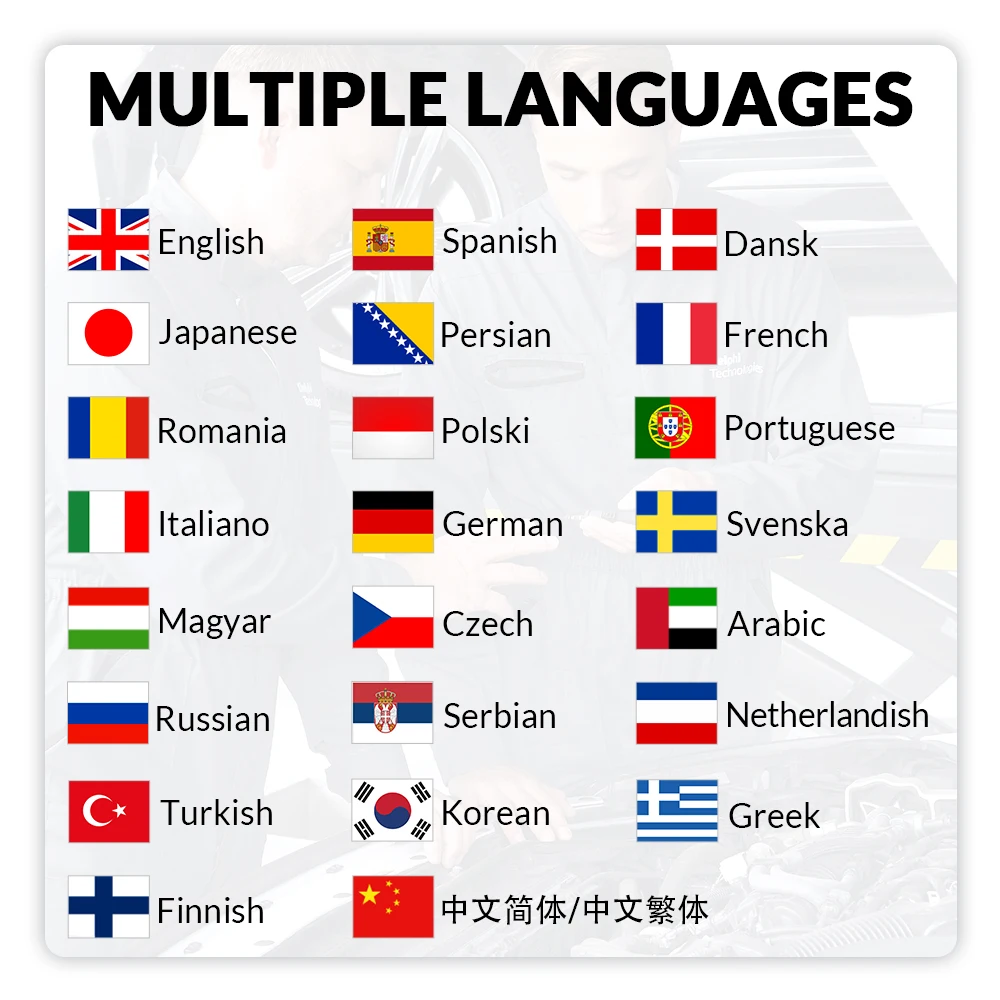 22 languages can be switched at will: Italian, English, Chinese Simplified, Chinese Traditional, German, Japanese, Russian, French, Spanish, Portuguese, Polish, Turkish, Dutch, Greek, Hungarian, Arabic, Danish, Korean, Persian , Romanian, Serbian, Finnish, Swedish, Czech