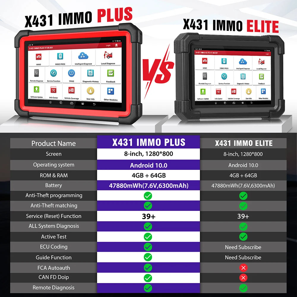 * LAUNCH X431 IMMO PLUS supports CAN FD and DOIP protocols, but IMMO Elite does not.
