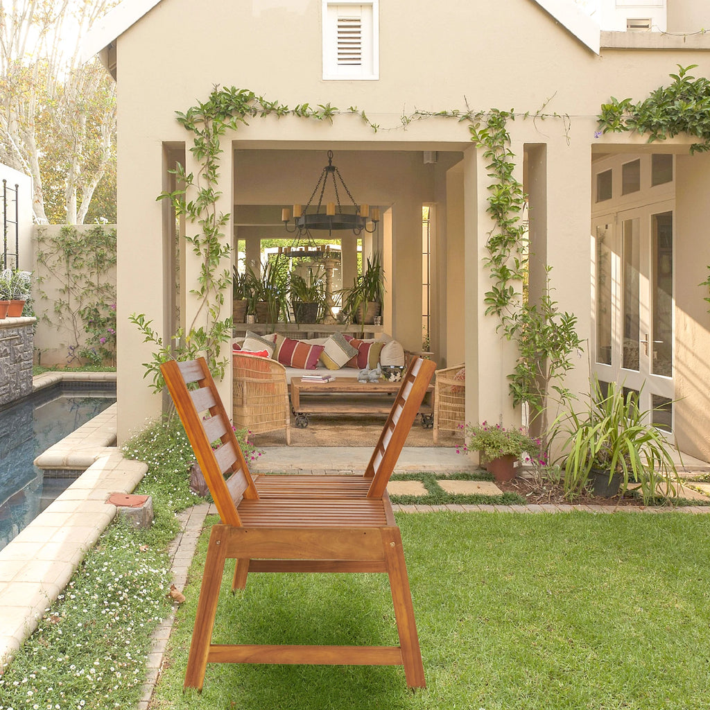 Elevate your outdoor sanctuary with our Acacia Wood Outdoor Patio Bench. This bench comfortably seats two adults, making it perfect for cozy conversations or peaceful solo relaxation in your garden, yard, or on your deck. The highlight of this bench is its adjustable backrest, allowing you to customize the seating arrangement to your preference, whether you desire side-by-side seating or face-to-face interaction. Crafted from high-grade acacia wood, this bench promises durability and a significant weight capacity up to 600 lbs, ensuring it remains a staple in your outdoor decor for years to come.