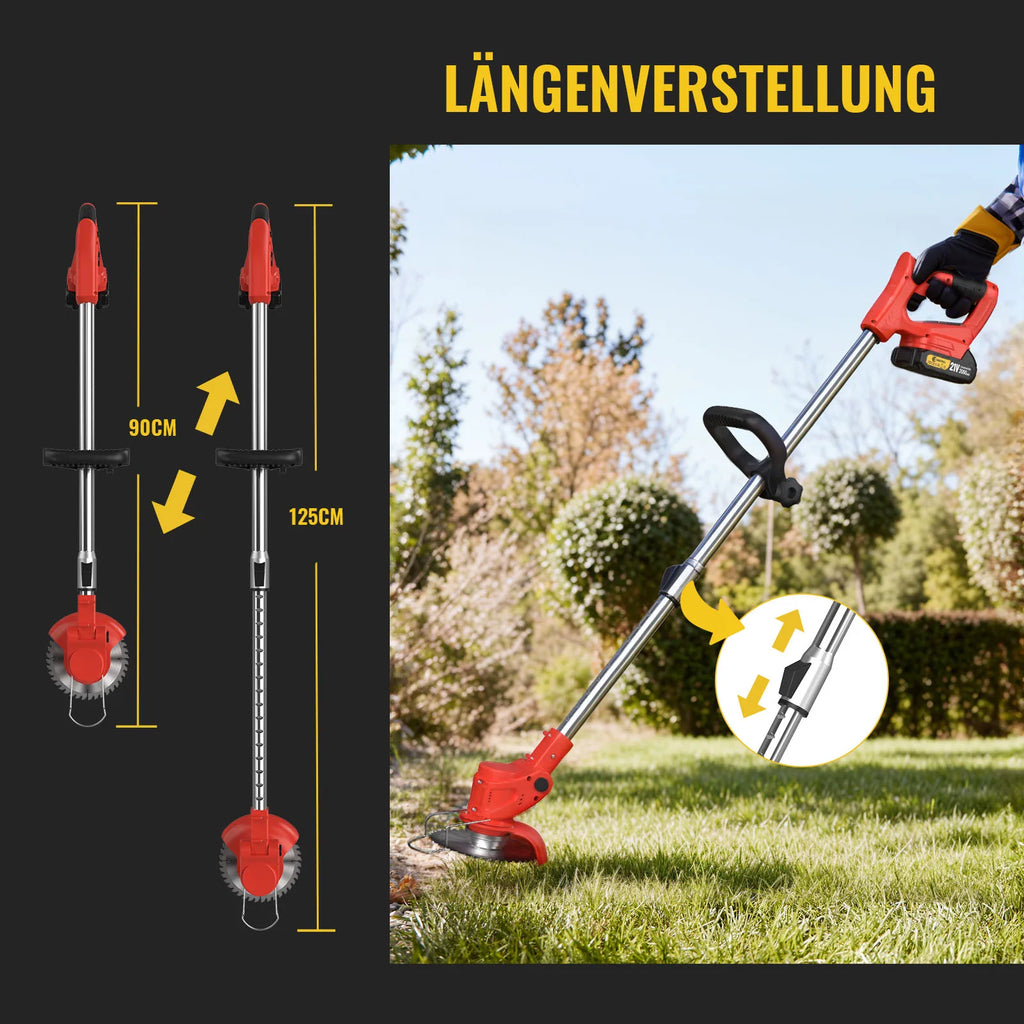 • 【ERGONOMIC DESIGN】The grass trimmers is equipped with an adjustable telescopic rod, which can be adjusted freely between 90-125 cm, and adjust the appropriate length according to different environments. The grass trimmer cordless is very light and easy to use, which greatly improves the efficiency and has an excellent sense of use. Powerful and lightweight lawn edger tool for men and women. if you have any product questions, please contact us.