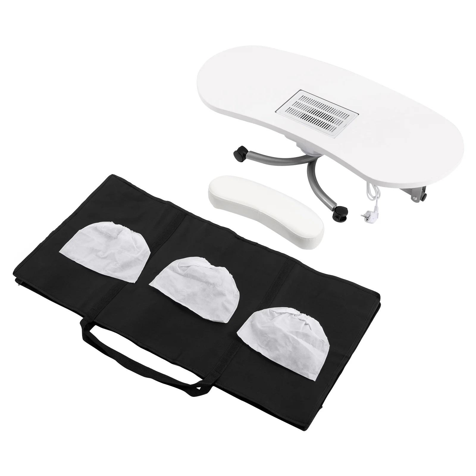 If you still worry about not having the right tools for manicures, this manicure table will be your ideal choice. Made of MDF and iron tube, it is sturdy and durable. Equipped with a nail vacuum cleaner, safety grille, dust collection bag, and waterproof tote bag, it can provide you with an ideal nail enhancement experience.