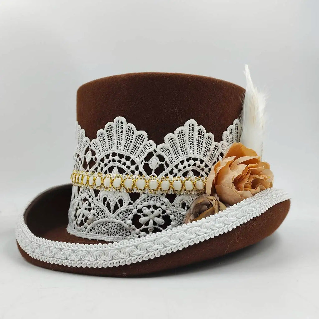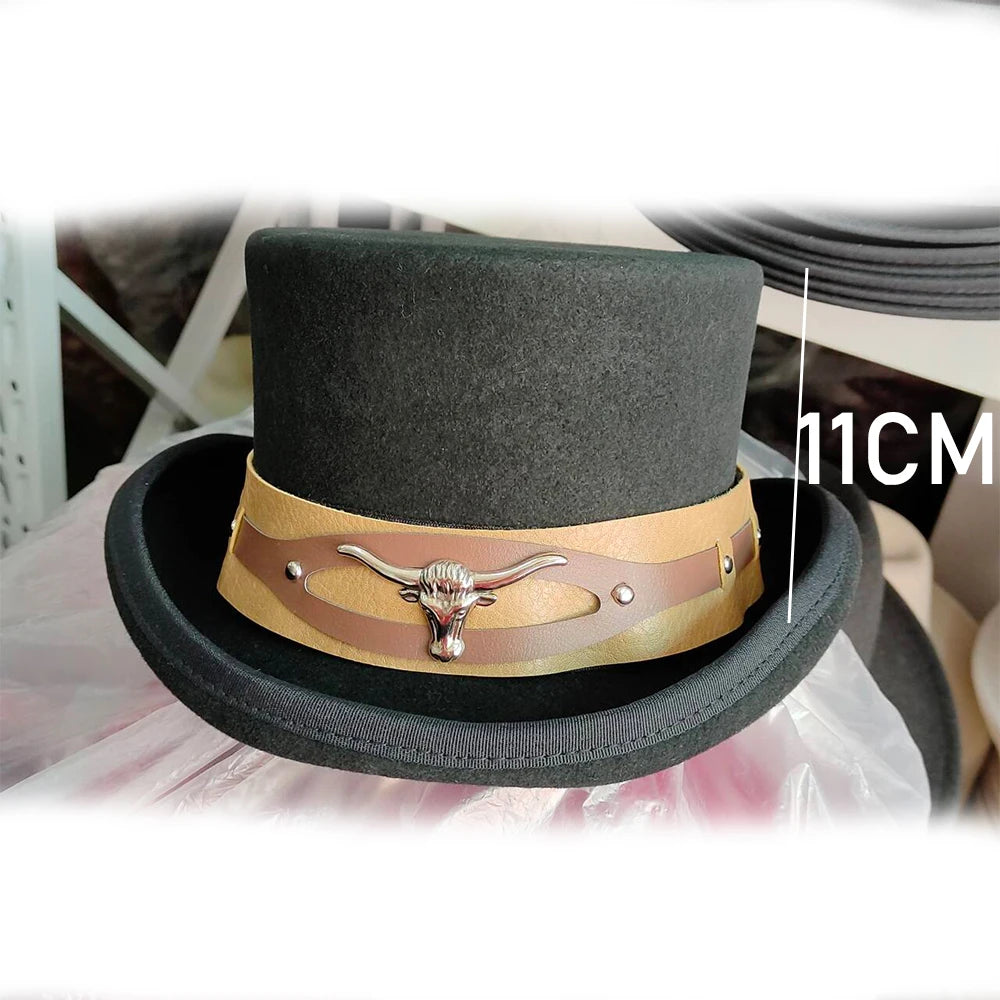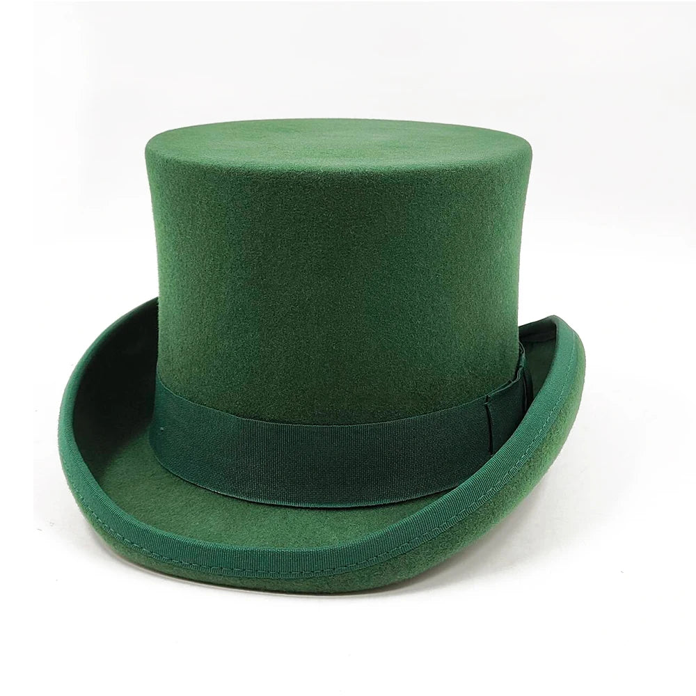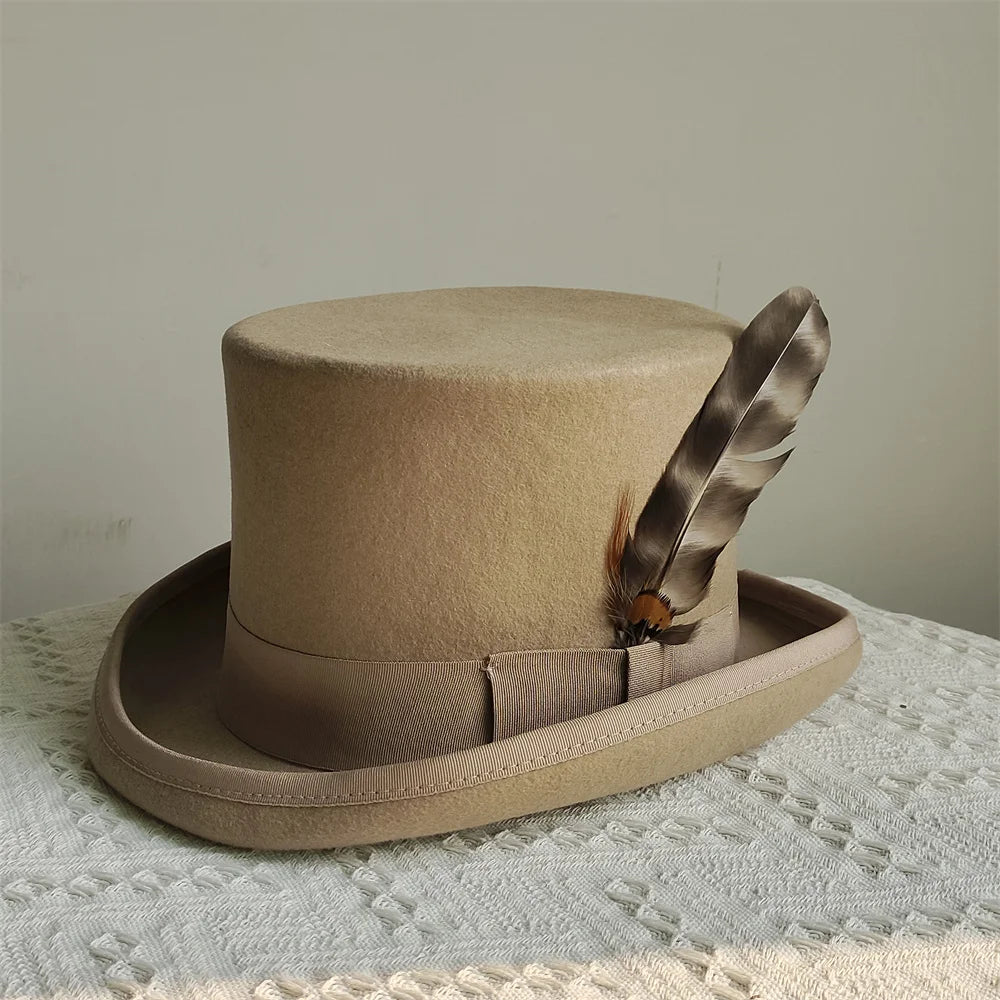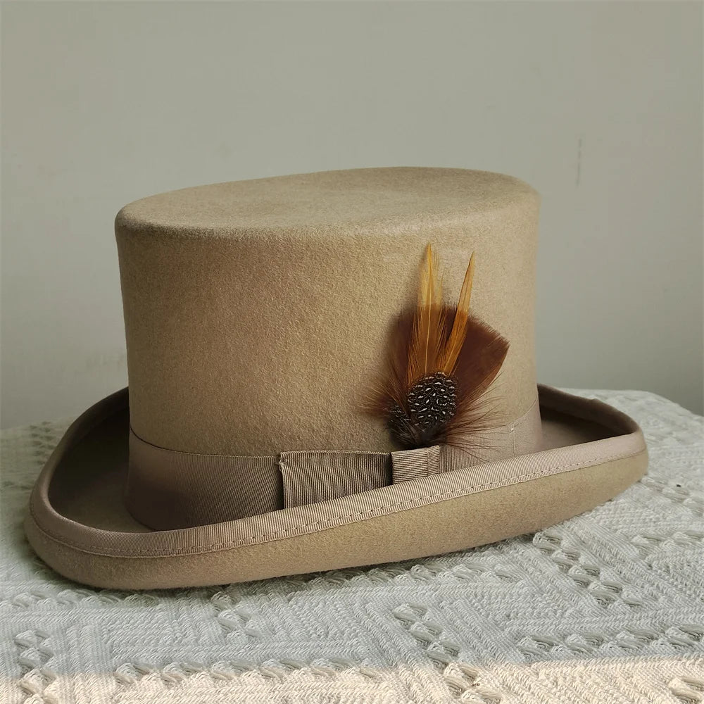 New Men Hat 100% Wool Fedora Hat Unisex Top Show Gentleman Bowler Hat Black Red Magic Hat Presidential Hat Feather Accessories