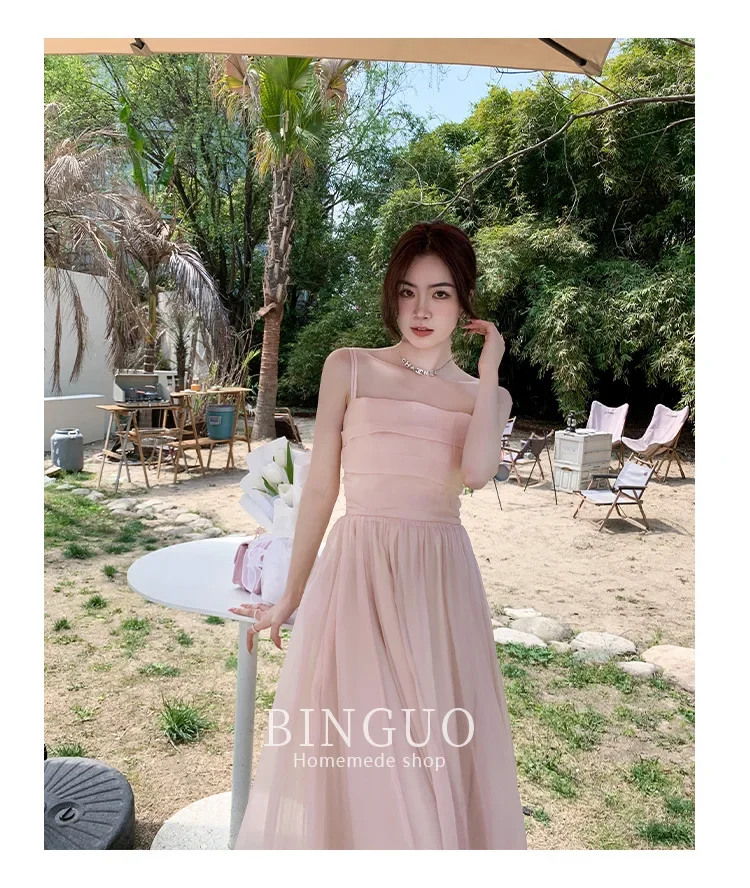 Pink Fairy Tank Dress 2024 New Style Women's Beach Vacation French Style Dress Sleeveless Summer Clothing Forest System