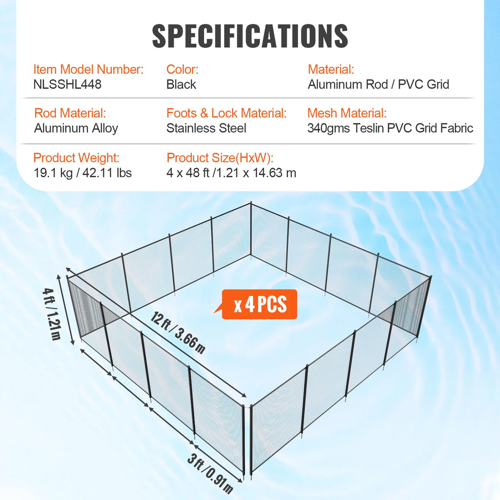Comprehensive Protection: Our pool fence offers versatile fitting for different pool shapes and sizes, especially for large pools. It not only ensures pool safety but also effectively protects pets and children, serving as your family's guardian.