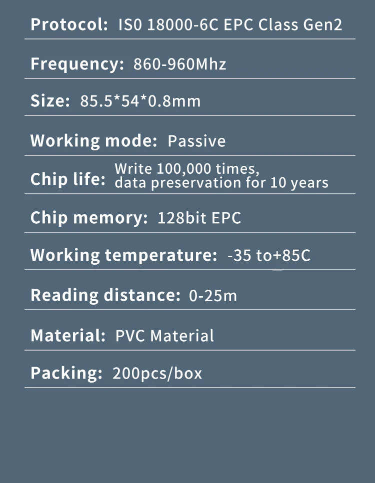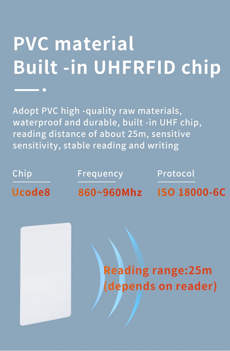 UHF 860-960Mhz Long Read Range White Card Passive UHF RFID PVC Card for Access Management