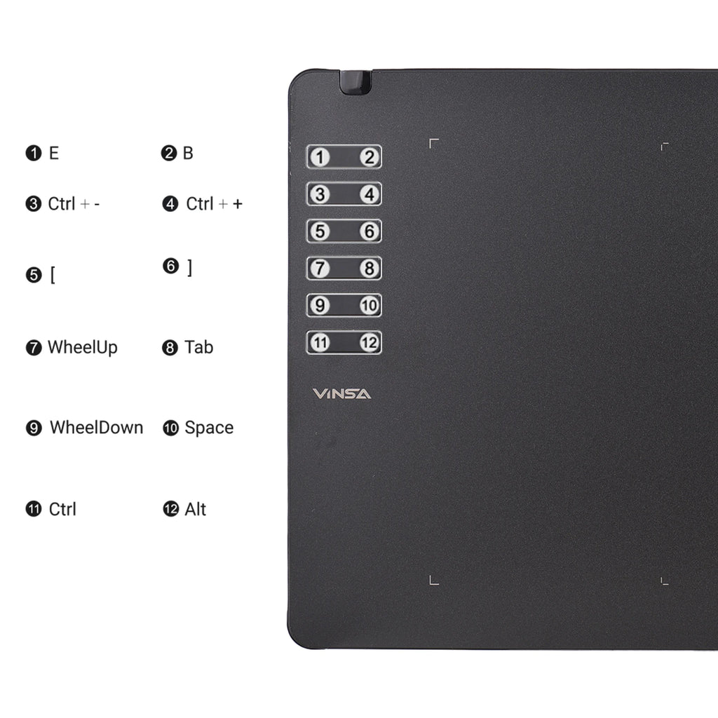 VINSA T1161 Graphics Drawing Tablet Ultra-thin Art Creation Sketch with Battery-free Stylus 8 Pen Nibs 8192 Levels Pressure