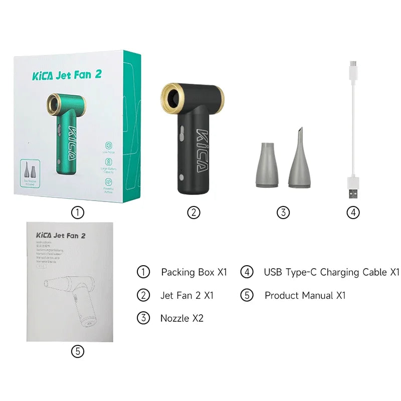 100000RPM KICA Jetfan 2 Air Blower Portable Turbo Fan Compressed Air Duster Wireless Computer Keyboard Cleaner for PC Car Camera