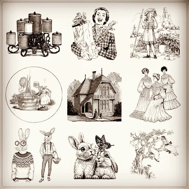 2022 New 10x10 Retro Easter Clear Stamps Girls Stamps Tie Child Bunny Lady Card Crafts No Metal Cutting Dies Scrapbooking