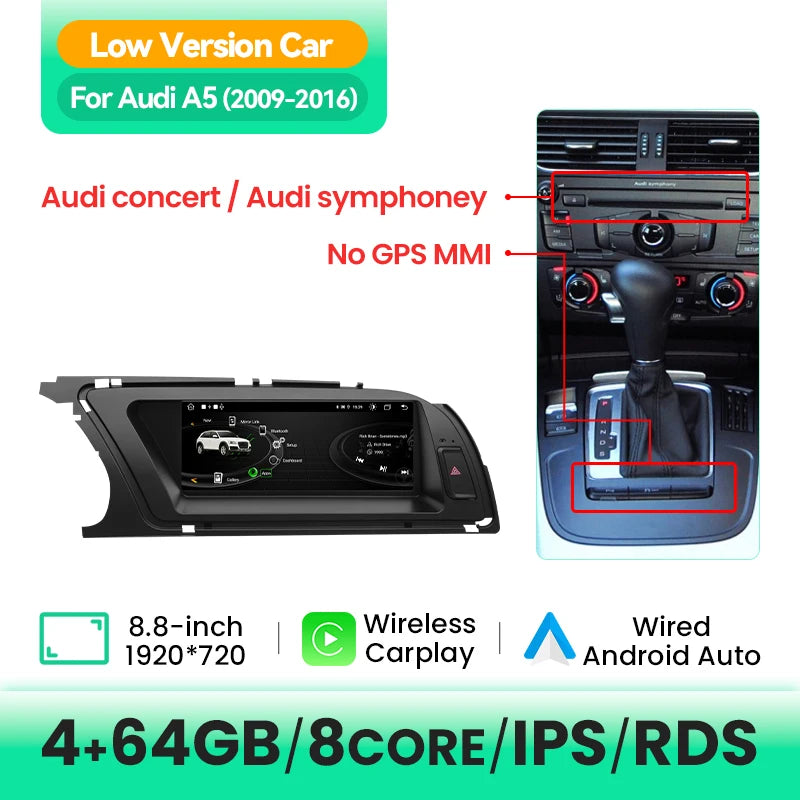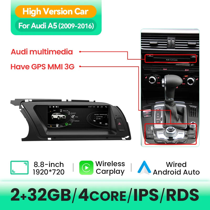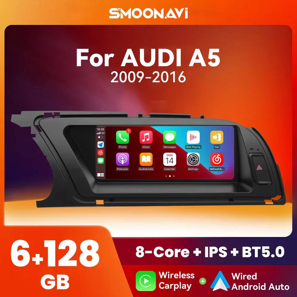 AI Voice Wireless Carplay Car Radio Player For Audi A5 2009-2016 Android 14 WIFI 4G SIM BT 8GB 128GB GPS Navi Touch Stereo IPS