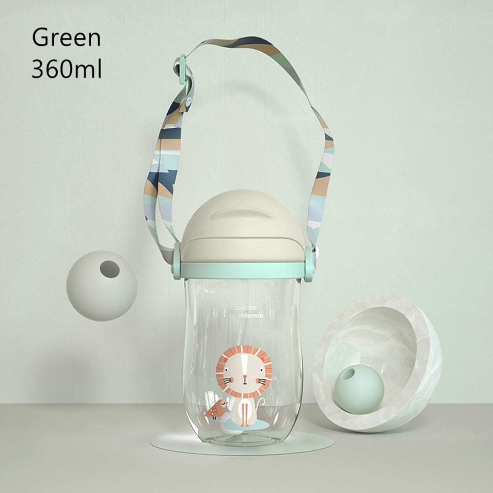 BC Babycare Baby Sippy Cup Gravity Ball Drinking Water Handle Baby Bottle Leak-proof V-Type Straw Anti-choked Shoulder Strap Cup