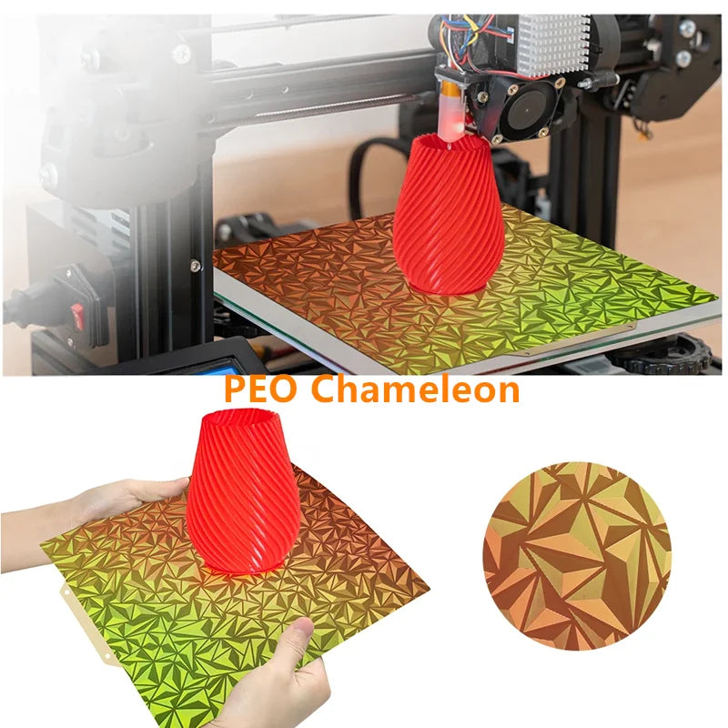 2.PEO Chameleon surface is up to 150°C,print PLA / TPU /PETG