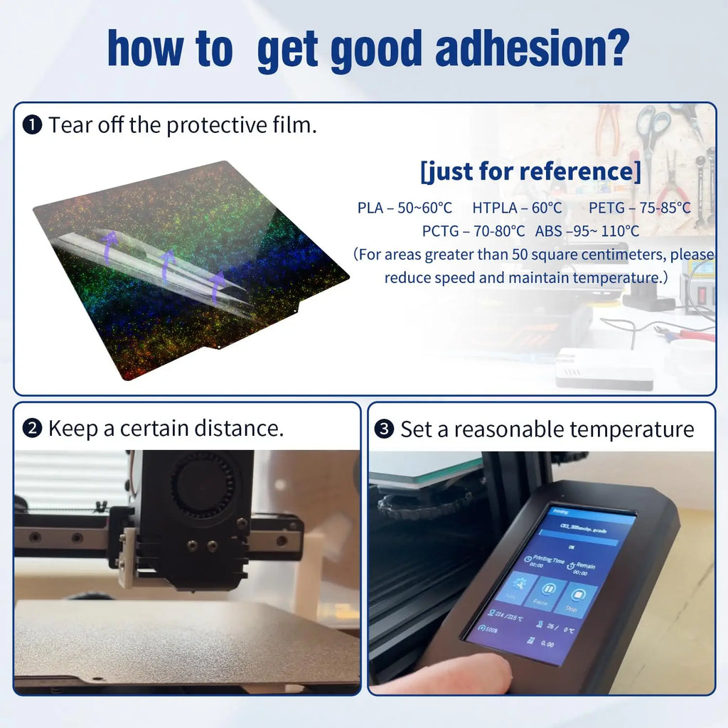 Product Features: PEY+ PEO Chameleon build plate Design,one Side Smooth PEYshows