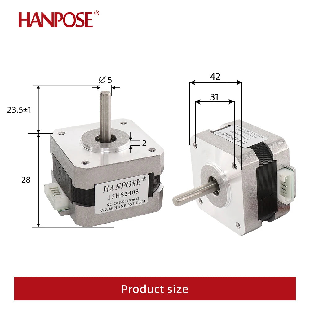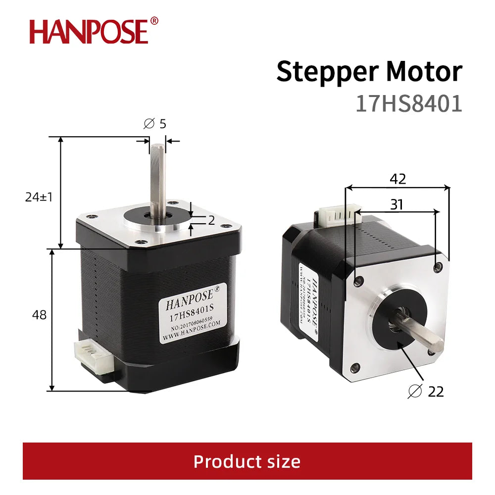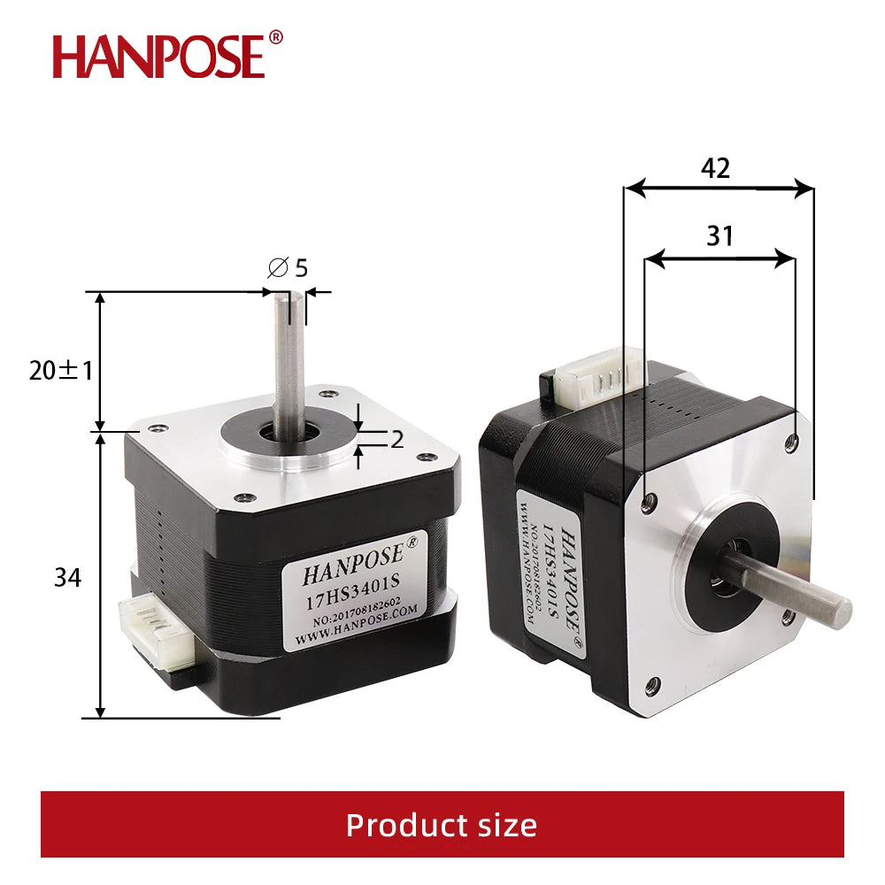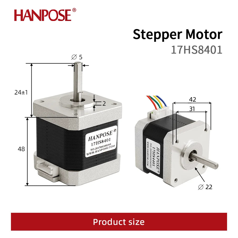 HANPOSE Nema17 stepper motor, torque 78 oz-in (52 N-cm), current 1.8 A. Models 17HS8401 17HS 2408 17HS3401S 17HS4401S 17HS6401S
