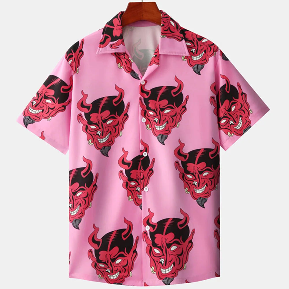 Hawaiian Shirt for Men Cuban Collar Devil Print Men's Shirt Streetwear Fashion Summer New Short Sleeve Top Men's Trendy Clothing