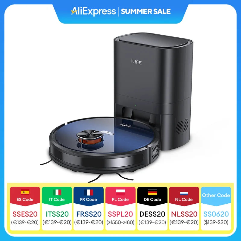 ILIFE T10s Robot and Mop,Auto-Empty Station, LDS Navigation 3000Pa Suction,Smart Home Wet Dry