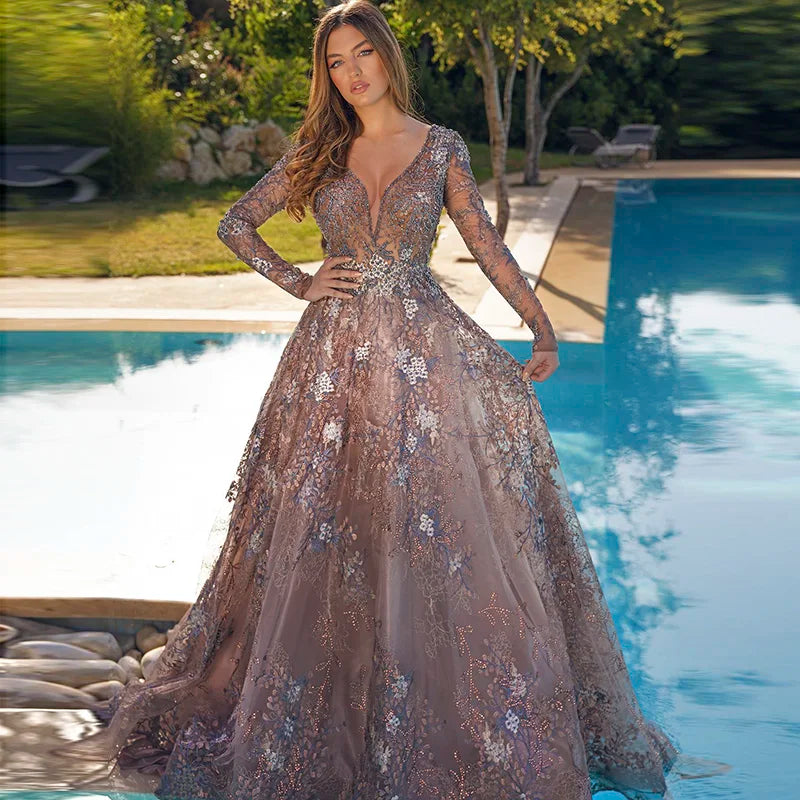Our evening gowns are crafted from premium fabrics like luxurious satin, shimmering chiffon, and delicate embroidered tulle, ensuring both a stunning visual appeal and a comfortable wearing experience.