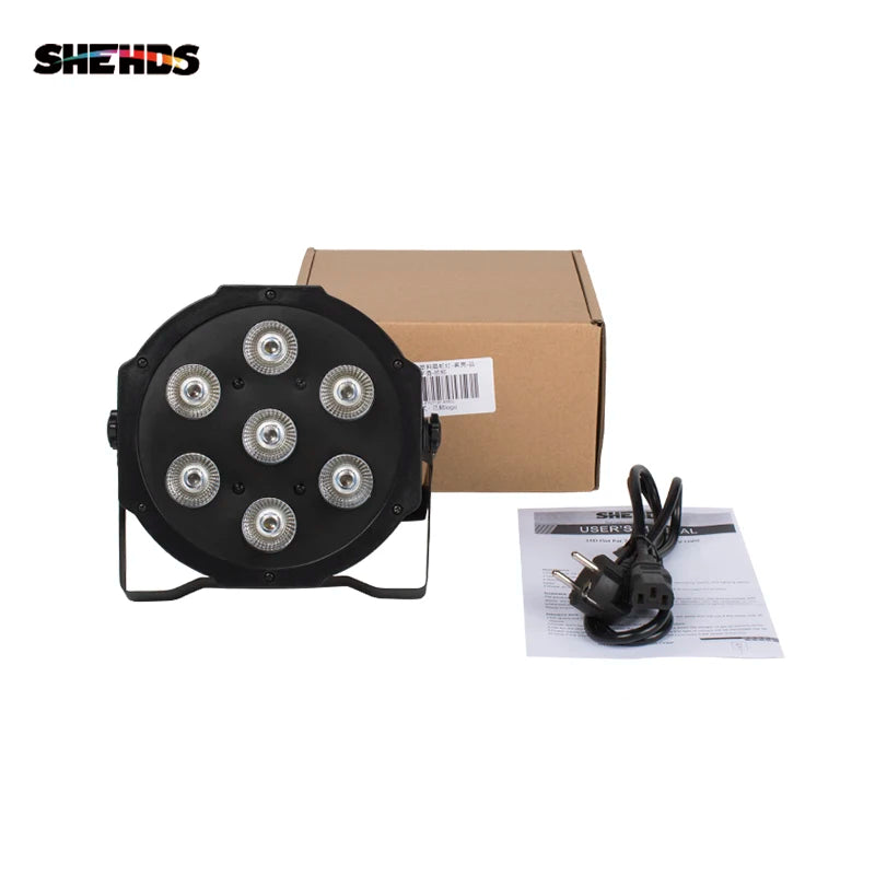 SHEHDS 7X12W RGBW / 7x18W RGBWA+UV LED Flat Par Light Mobile Plug Ultra-Quiet Fan Family Birthday Party Theater Stage Lighting