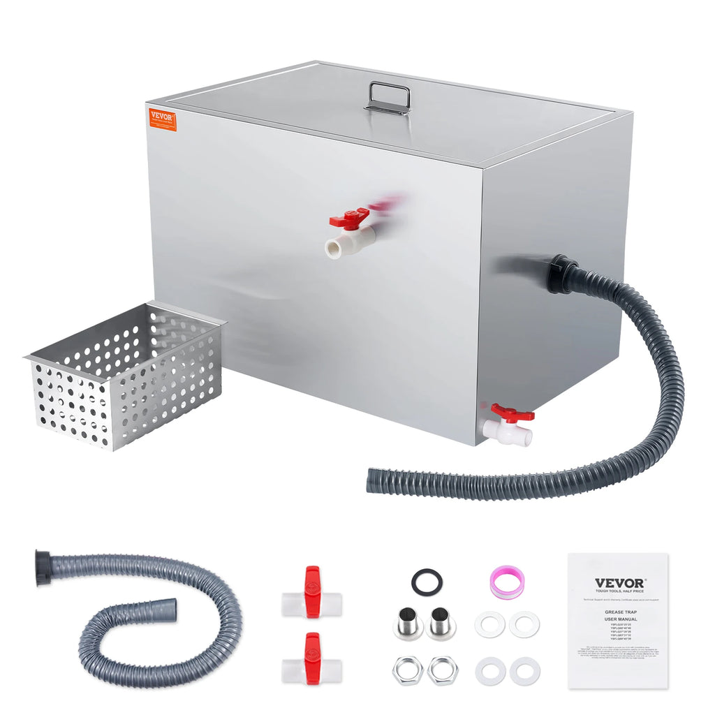 This commercial grease interceptor is made entirely from high-quality materials, making it sturdy, durable, and resistant to deformation. It comes with a full set of accessories.