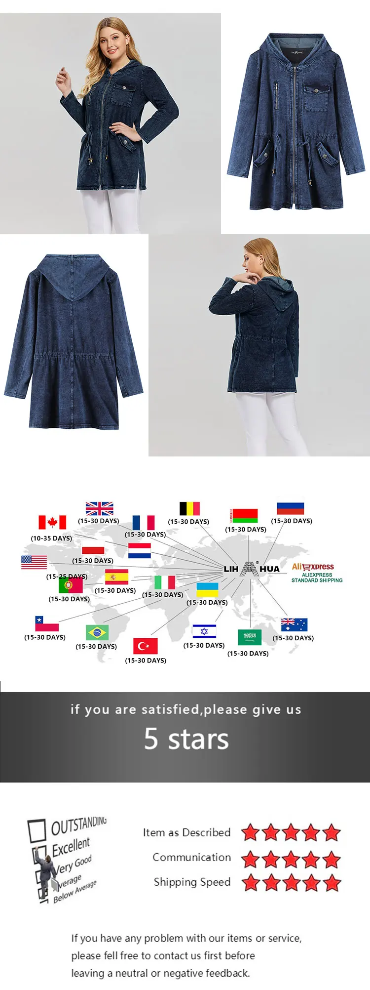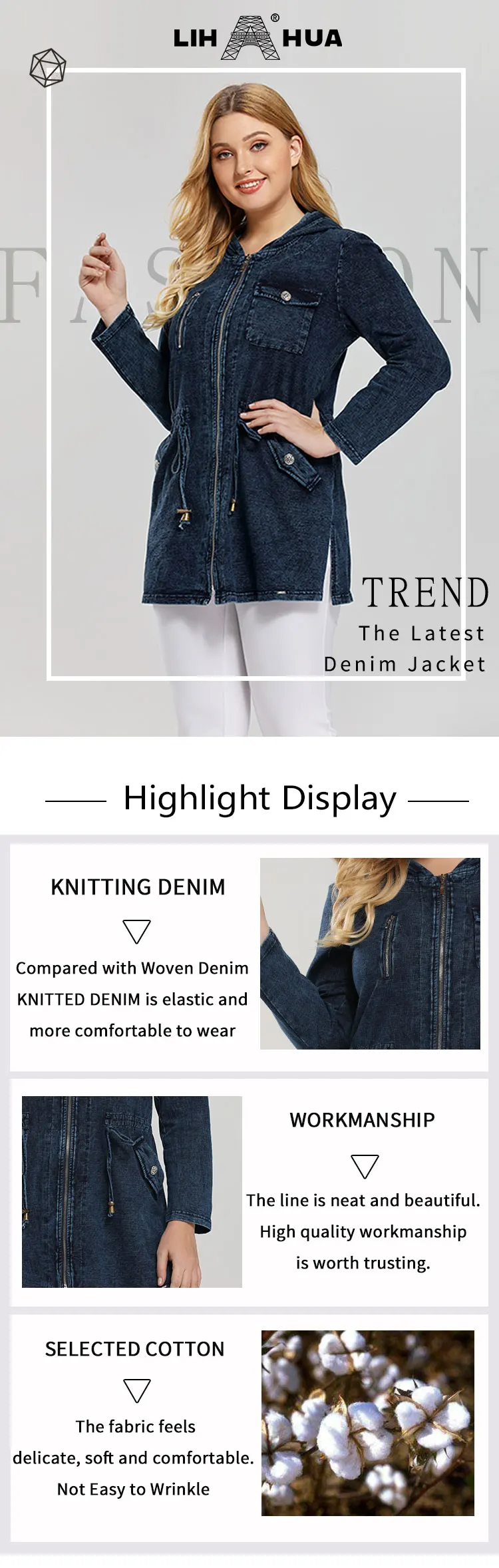 LIH HUA Damen-Jeansjacke in Übergröße, lässiger langer Stil für Damen, Premium-Stretch-Baumwolle, gestrickte Denim-Chaquetas