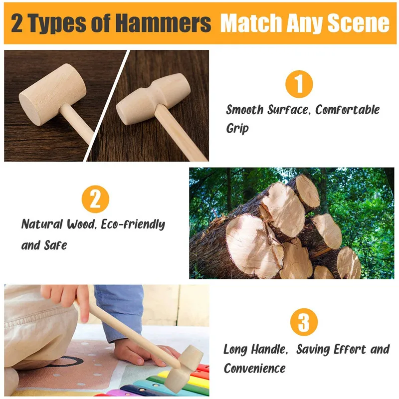 20/50/100 Pieces Mini Wooden Hammer Balls Toy Pounder Replacement Wood Mallets Baby 3D Baking Tools