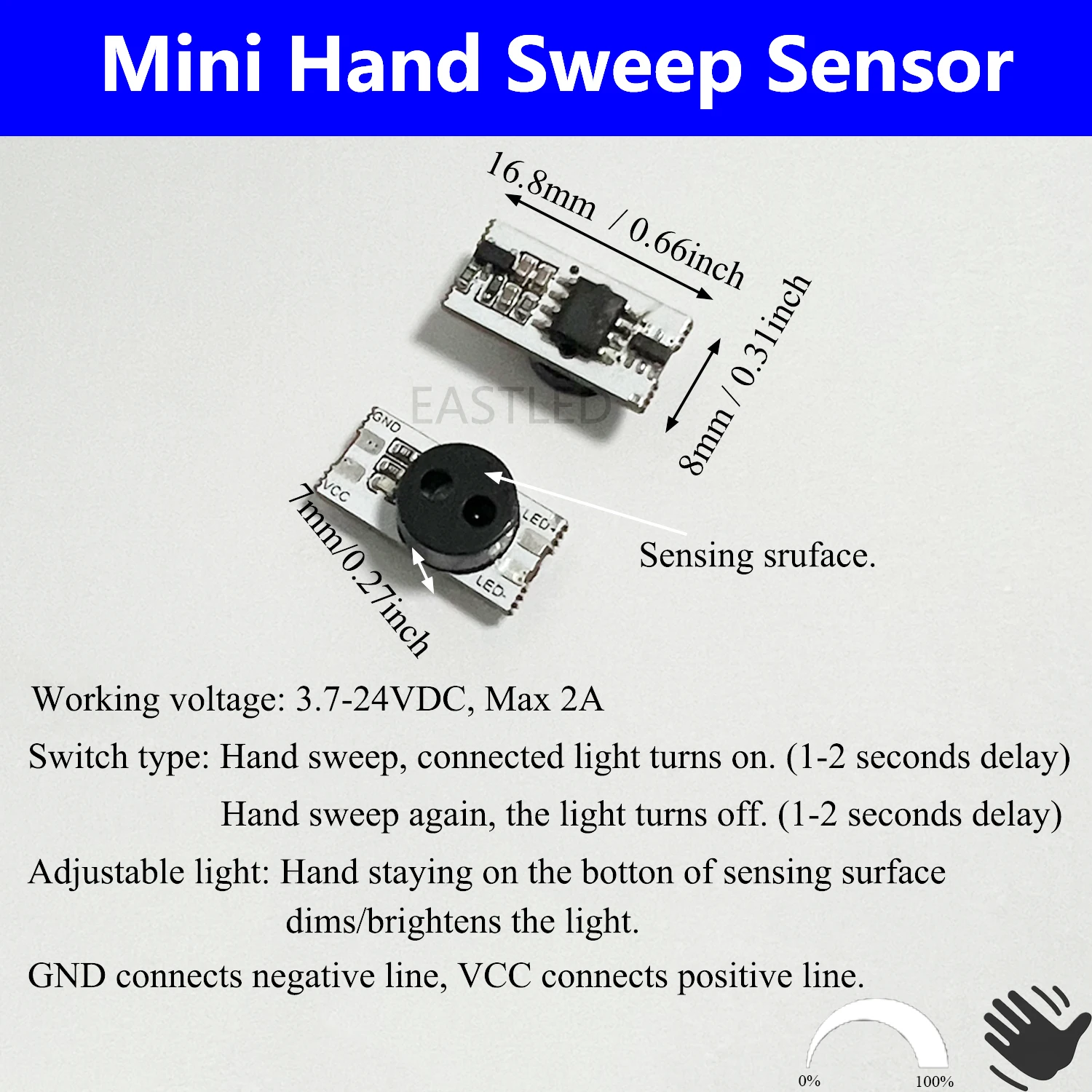 DC5V12V24V Hand Wave Sensor Switch Module Rounded Head 2A Mini Sweep Smart LED Controller for Kitchen Wardobe Cabinet LED Strip