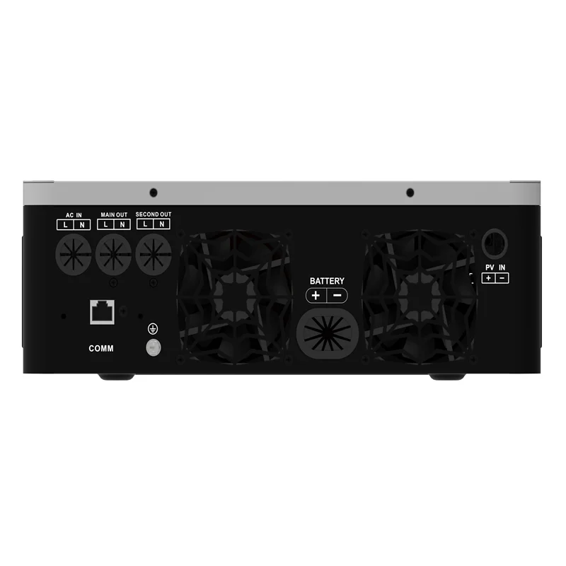 Its comprehensive LCD display offers user-configurable and easy-accessible button operation such as battery charging current, AC/solar charger priority, and acceptable input voltage based on different applications.