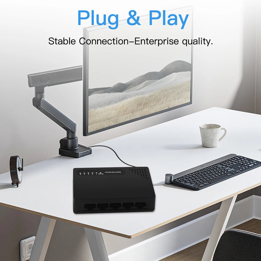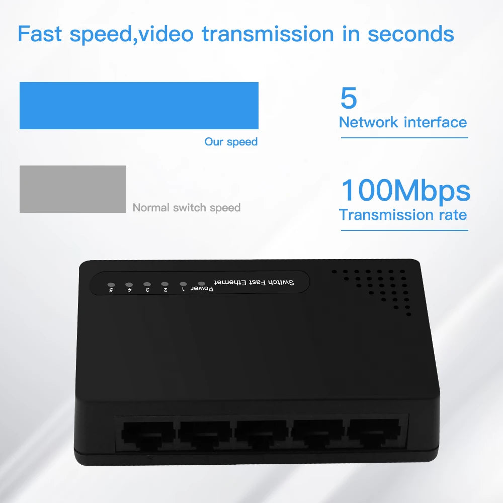 FENVI 5 Ports 100mbps Network Switch Fast Ethernet LAN RJ45 Hub Splitter Plug and Play EU US Power Supply Support Network Switch
