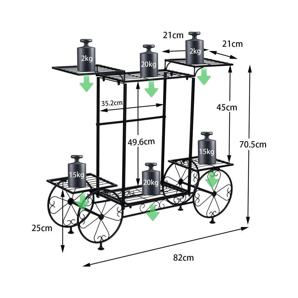 Large Metal Garden Cart Plant Stand Parisian Style Flower Display Rack Holder for Indoor Outdoor