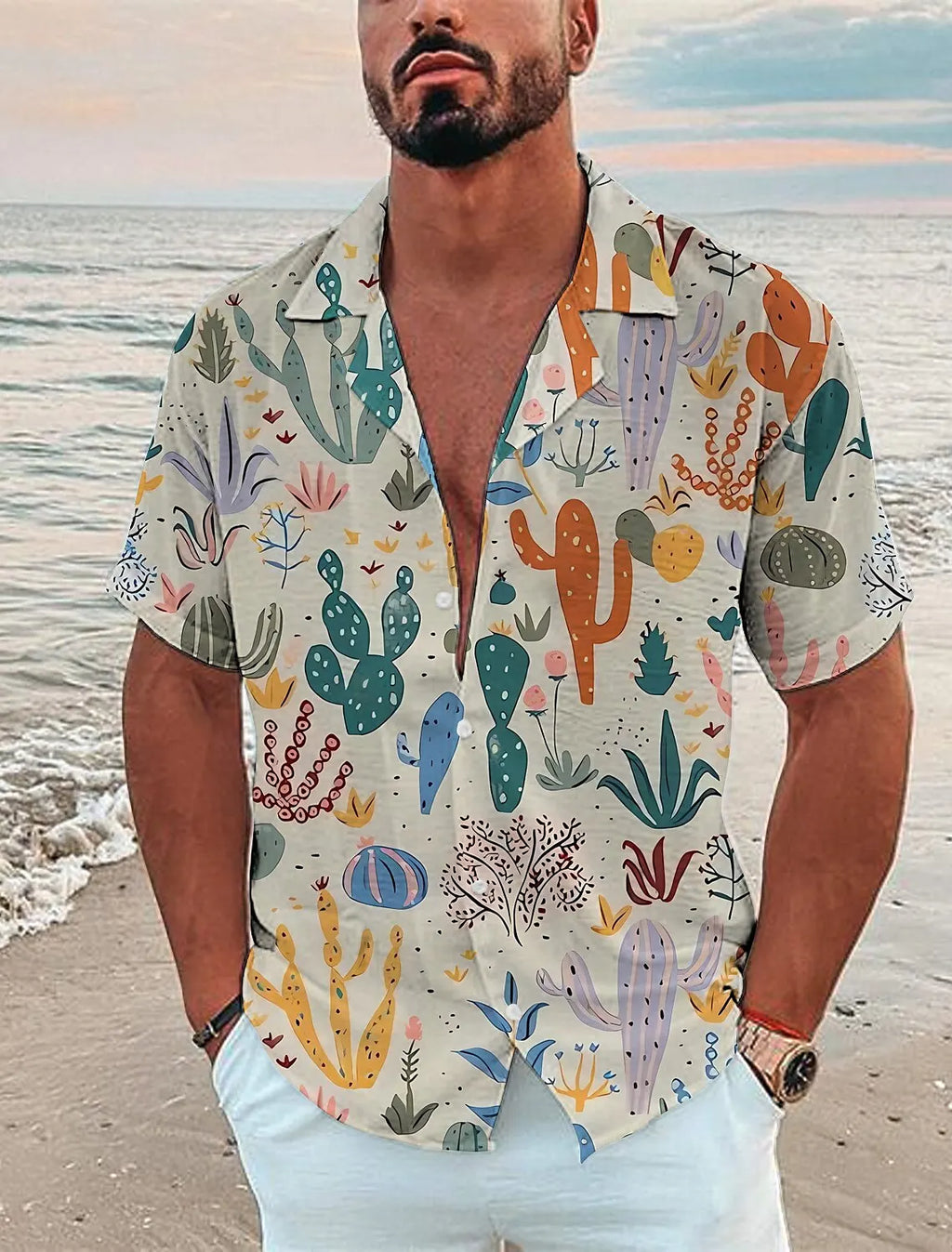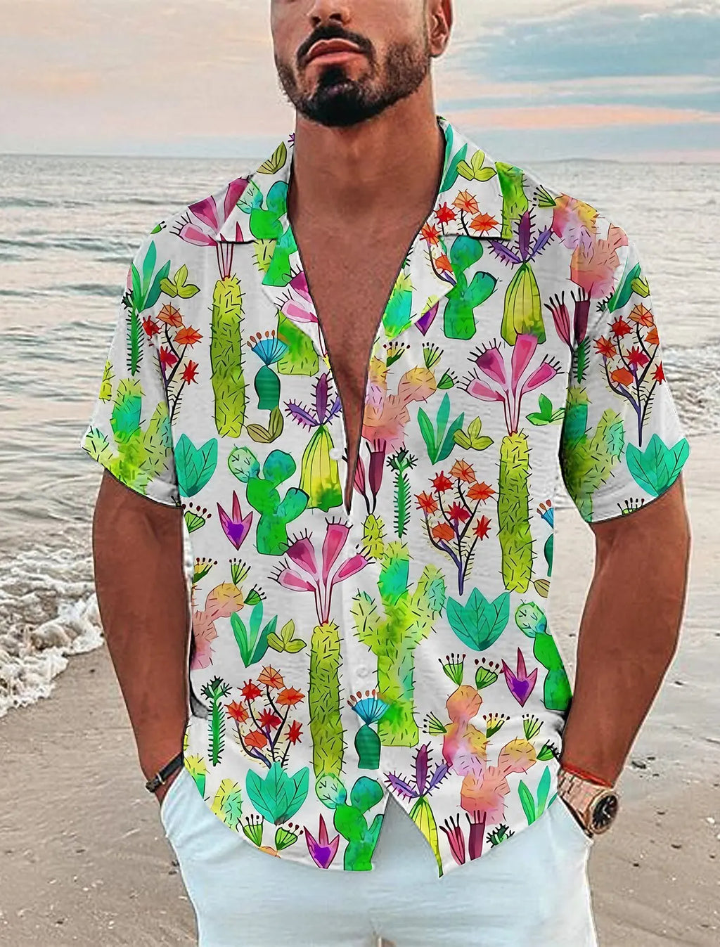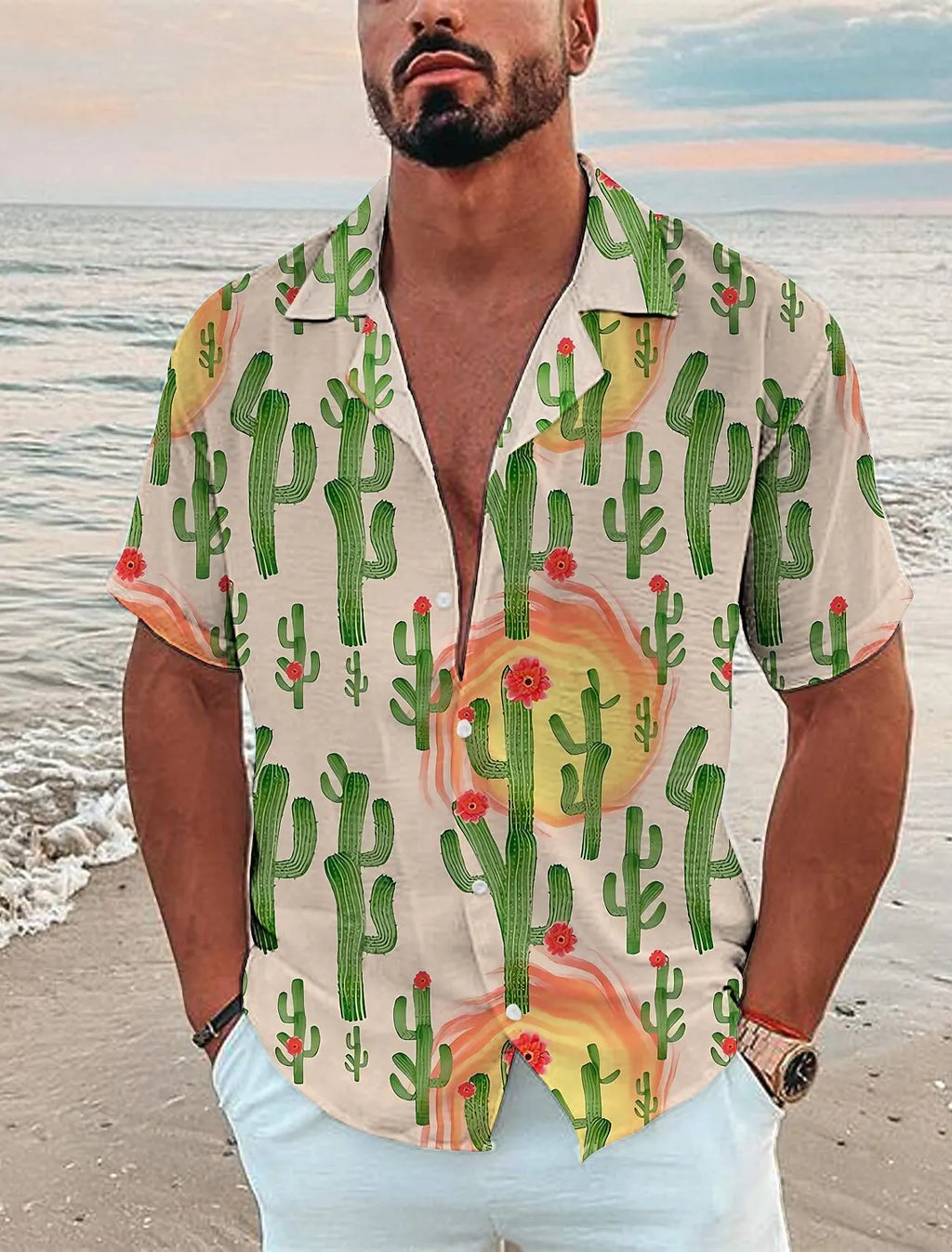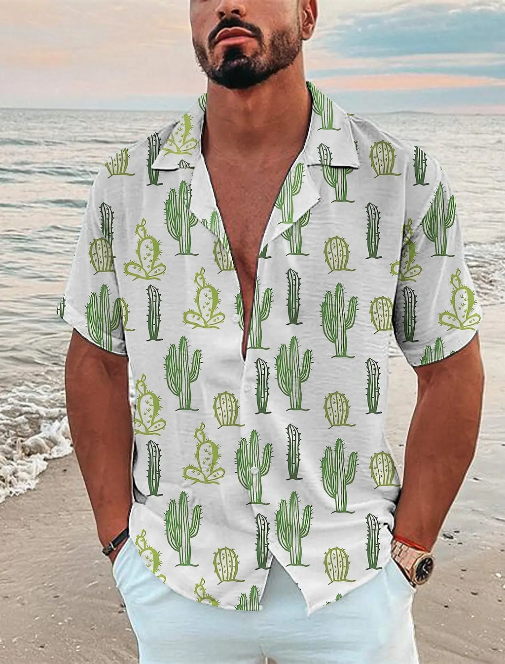 Men's Shirt Cactus 3D Print Men's Clothing Oversized Summer 2024 New Travel Hawaii Beach Hawaiian Harajuku Short Sleeves Shirt