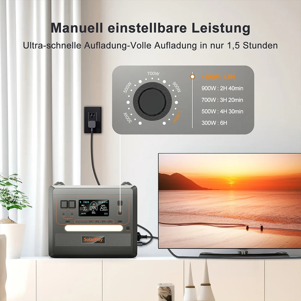 SOLARPLAY Q2501 Q2402M Portable Power Station 2160WH 2304WH LiFePO4 Battery with 2400W/2500W (4800W Peak) Solar Generator