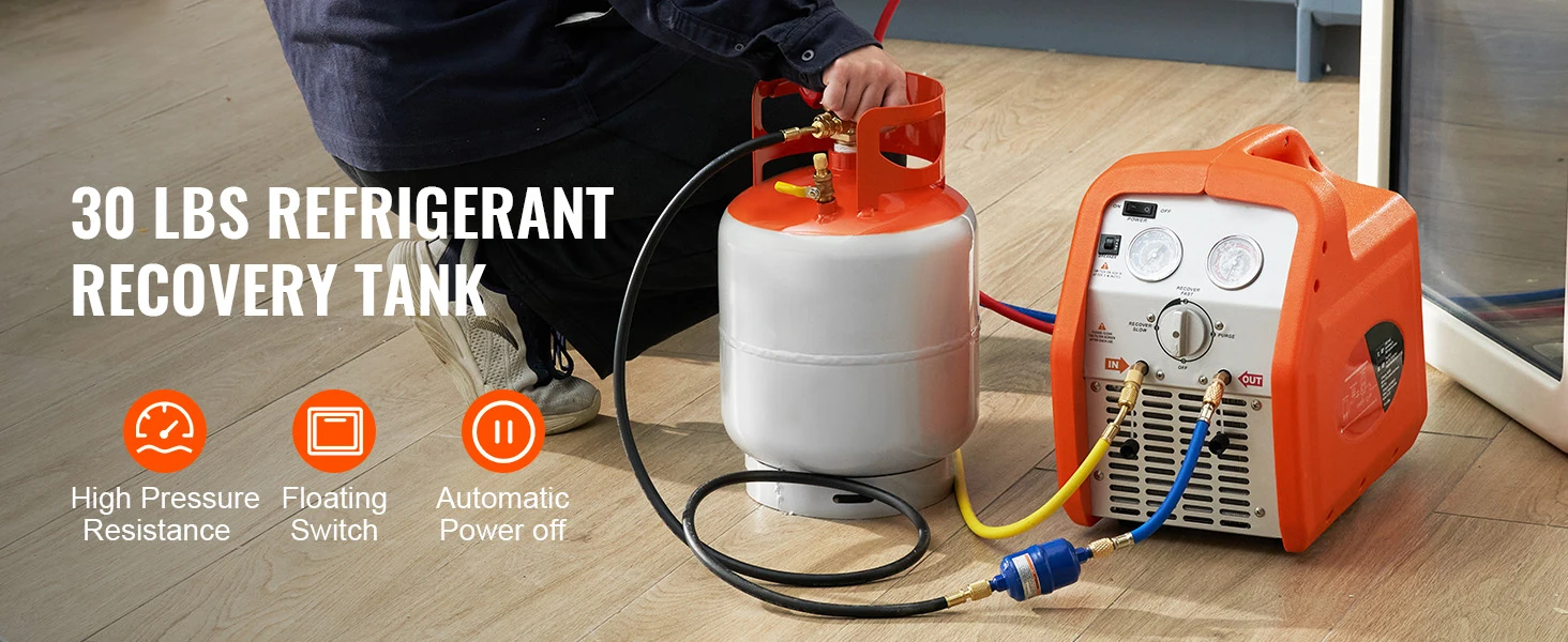 • Reusable Recover Tank: The tank body is crafted from durable HP295 steel with a sturdy 0.1-inch wall thickness. Its sleek high gloss powder coating and reinforced steel seal make it resistant to wear, even after extended use.
