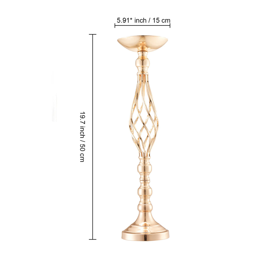 Versatile Application: Adorn this wedding centerpiece with lovely bouquets or artificial flowers. Its refined and fashionable design makes it ideal for table decoration, holiday events, and enhancing spaces such as bars, hotels, cafes, and living rooms. Easy Assembly: This wedding vase is engineered for effortless assembly, requiring no tools. Merely follow the provided instructions, and you'll have it ready for use in no time. Elegant Design: The wedding vase features a hollow spiral pattern combined with transparent crystal, presenting a simple yet elegant look. It ensures balanced weight distribution for enhanced stability, allowing you to place multiple decorations without worry of instability. High-Quality Material: Crafted from superior carbon steel, this wedding floral stand is resistant to deformation and built to endure. The surface undergoes a French gold electroplating process, offering a brilliant finish with vivid colors that are both captivating and easy to clean. It utilizes screw-fastened connections to prevent pin deformation, ensuring enhanced stability after assembly. Compatible with Various Floral Arrangements: Standing at 21.65 inches tall, this gold vase won't obstruct views on dining tables, facilitating smooth conversations. With a diameter of 7.87 inches, it is compatible with most floral arrangements available in the market, and its robust structure minimizes movement.