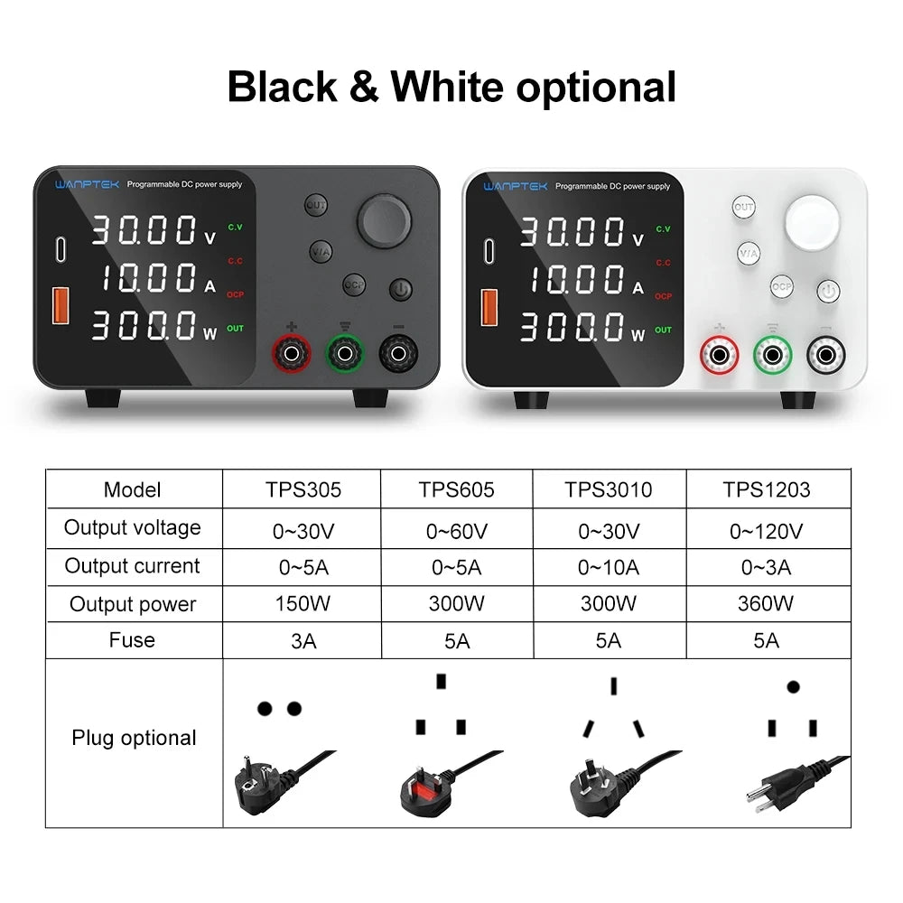 Wanptek Laboratory DC Power Supply Adjustable 30V 10A 60V 5A Regulated Lab 120V 3A Bench Power Supply