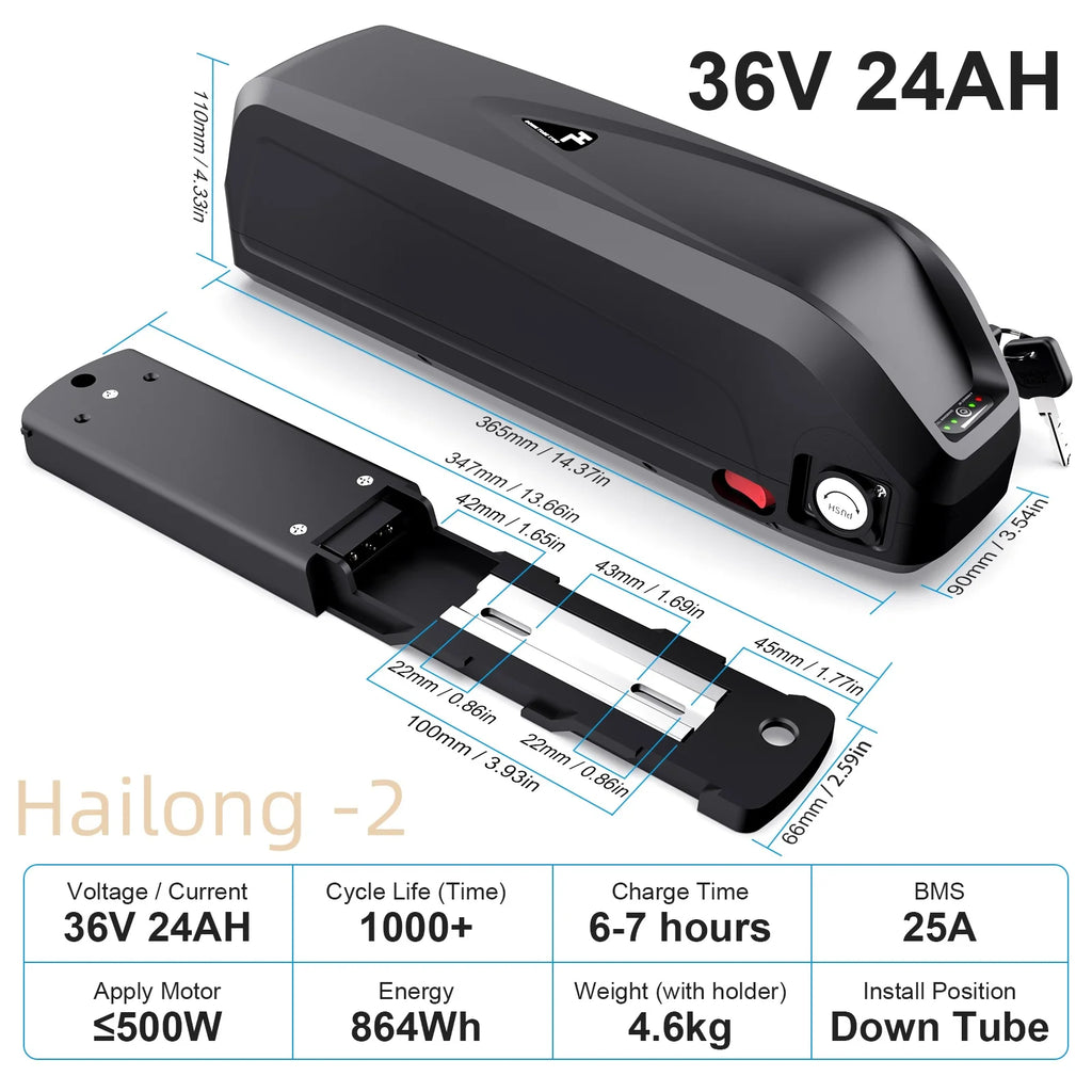 Silverfish Ebike Battery 24V 10Ah 13Ah 15Ah 36V 300W Li-on 18650 Batteries Pack For Electric Bicycle Bafang Tongsheng Motor Kit