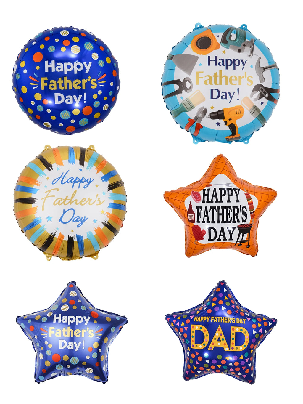 6pcs 18inch Round Star Happy Father's Day Foil Balloons Father's Day Decorations Helium Balloon