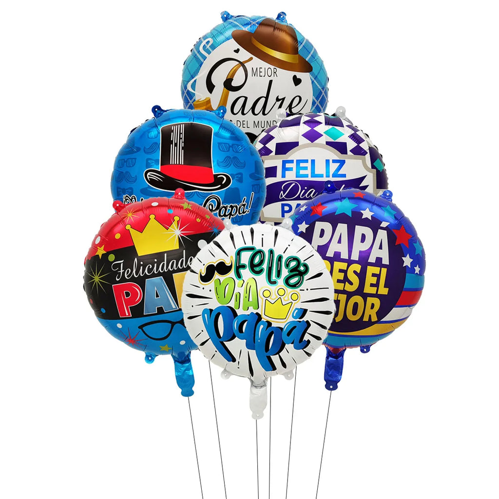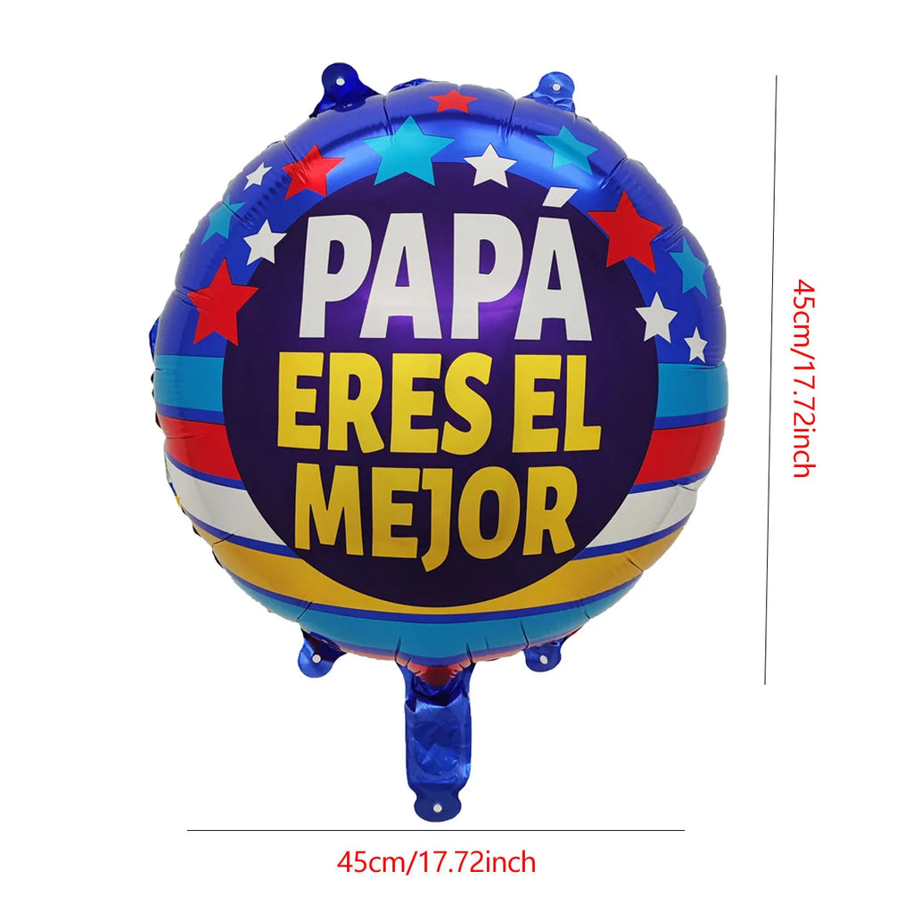 6pcs 18inch English Spanish Happy Father's Day Round Star Balloons Best Dad Helium Balloon Papa Father's Day Party Decorations