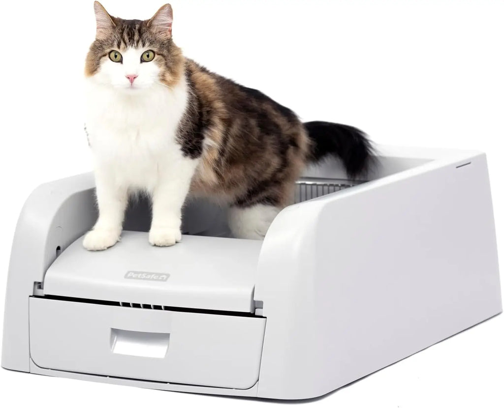 Experience the convenience of the PetSafe ScoopFree Clumping Self Cleaning Cat Litter Box, an innovative product designed to automatically rake through your cats favorite clumping litter, locking away waste and odors. This box ensures a clean and odor-free environment for your pet and your home, freeing you from the daily chore of scooping. This automatic litter box is not only compatible with clumping litter, but it also works with most other litter types. You can use the litter that your cat prefers, ensuring their comfort and happiness while providing superior odor control. All you have to do is 'fill it, leave it, refresh it' with this self cleaning litter box. It is minimal in maintenance and is beneficial for busy pet owners. For a single-cat household, it is likely that only a weekly waste bin emptying and periodic litter refresh is needed. Whether you have one cat or multiple cats, this cat automatic litter box ensures the litter is always clean and ready for use. The removable rake is easy to remove for cleaning. Place your trust in PetSafe, backed by U.S.-based customer care and a quality promise. PetSafe is a global leader in pet behavior, containment, and lifestyle innovations since 1998 keeping your pet healthy, safe, and happy.