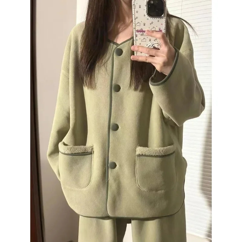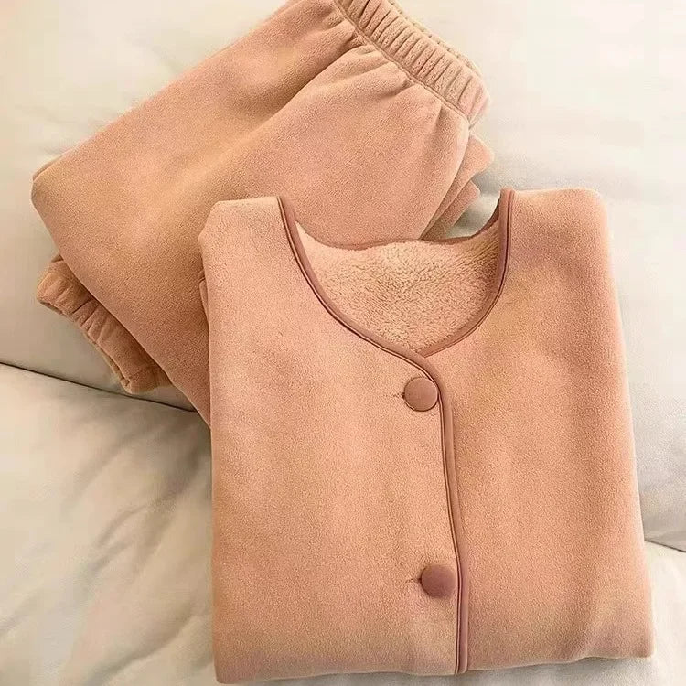 Coral Velvet Pajamas Women Autumn and Winter Long-sleeved Pants 2 Piece Set New Padded Thickened Flannel Homewear Clothing Suit