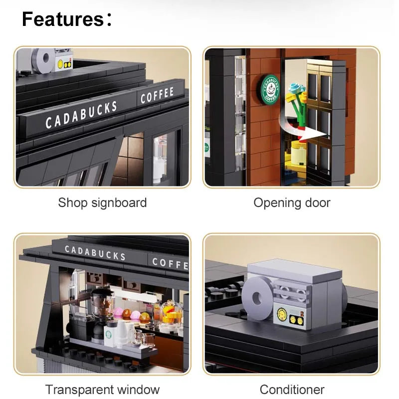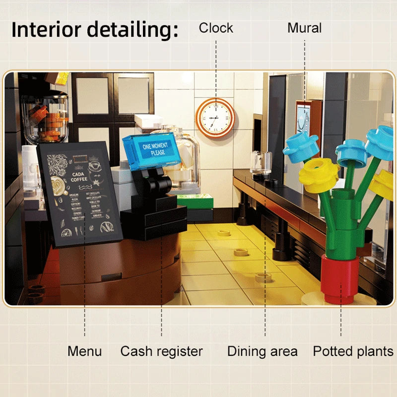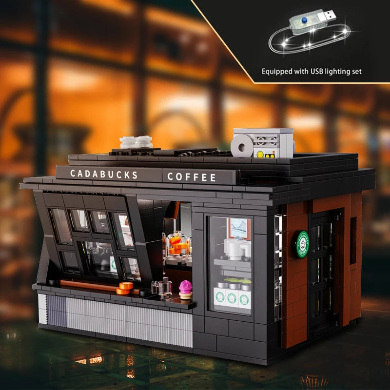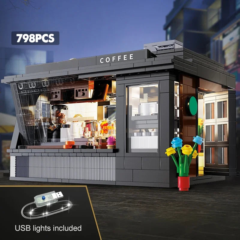 Creative Street Scene Modular Buildings LED Cafe Store Model 768PCS Building Blocks Brick Toys for Children Birthday Gift Set