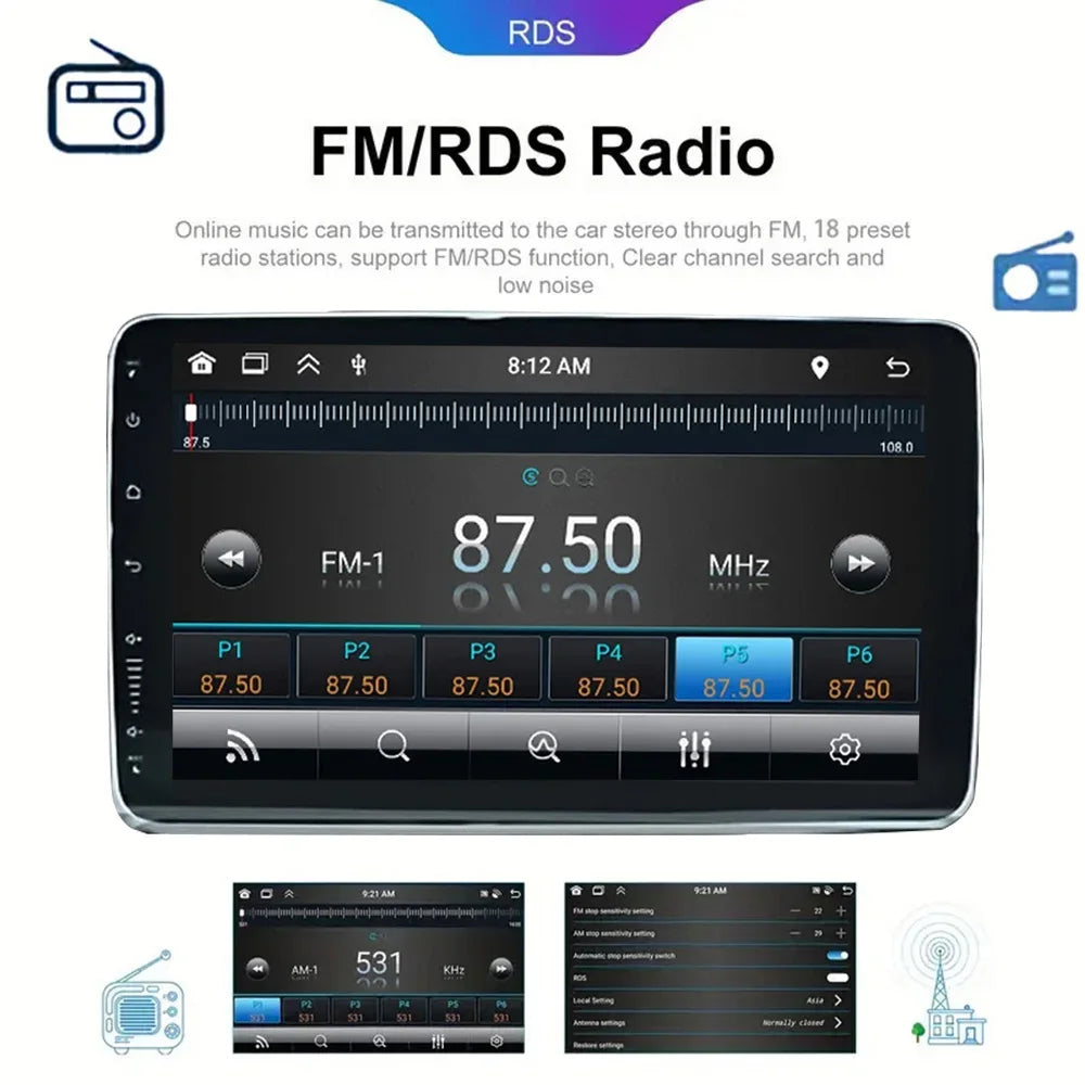 MTIJIEY Android13 1din 10inch Car Stereo Radio Rotate Touch Screen For Universal Carplay GPS Navigation Bluetooth WIFI autoradio