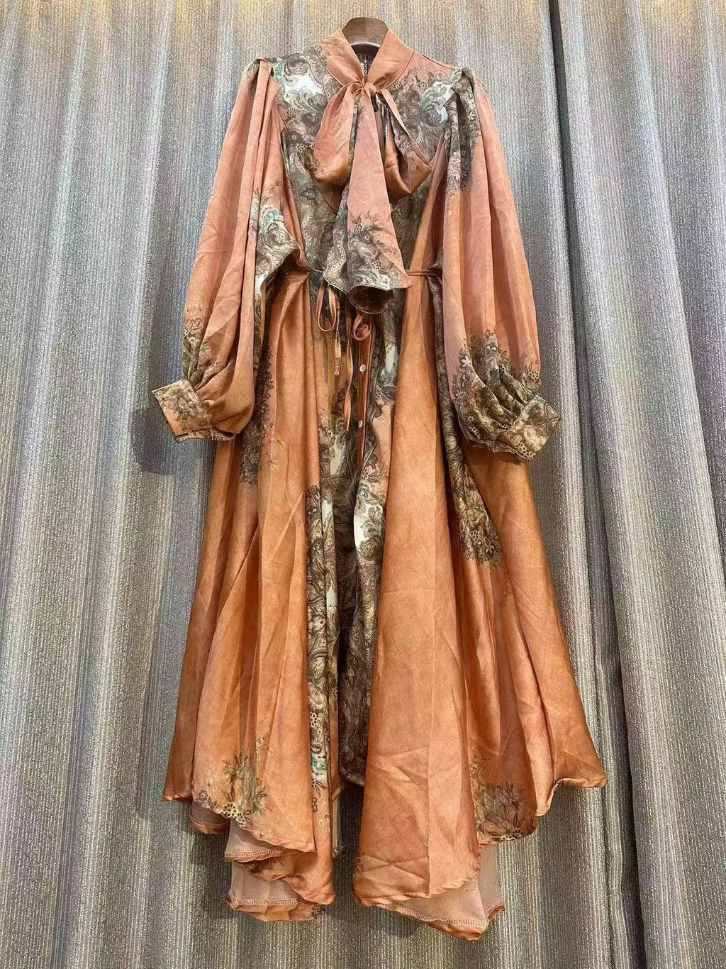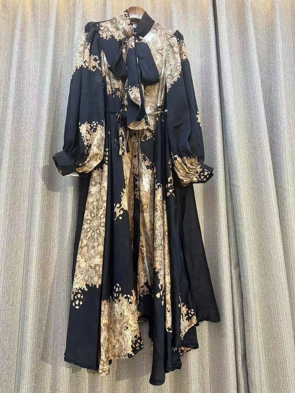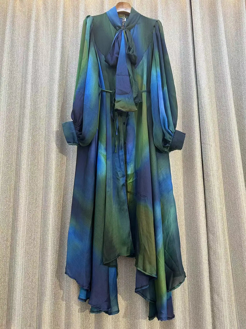 New 2024 Autumn Fashion Irregular Party Midi Dress Female long Sleeve Elegant Loose Print Casual Evening Dress For Women
