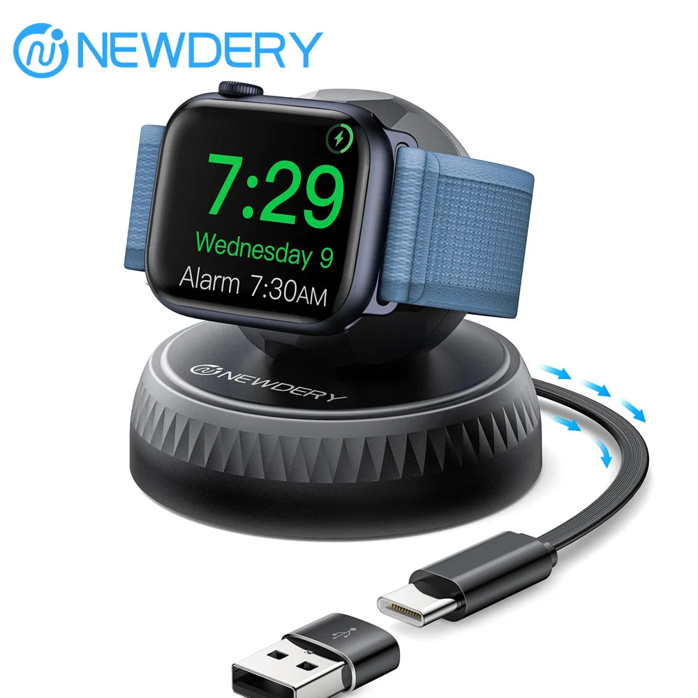 NEWDERY Portable Wireless Magnetic Fast Charging Station for Apple Watch Series 10/9/8/7/6/5/4/3/2/1/SE/Ultra 2/1 With C Cable